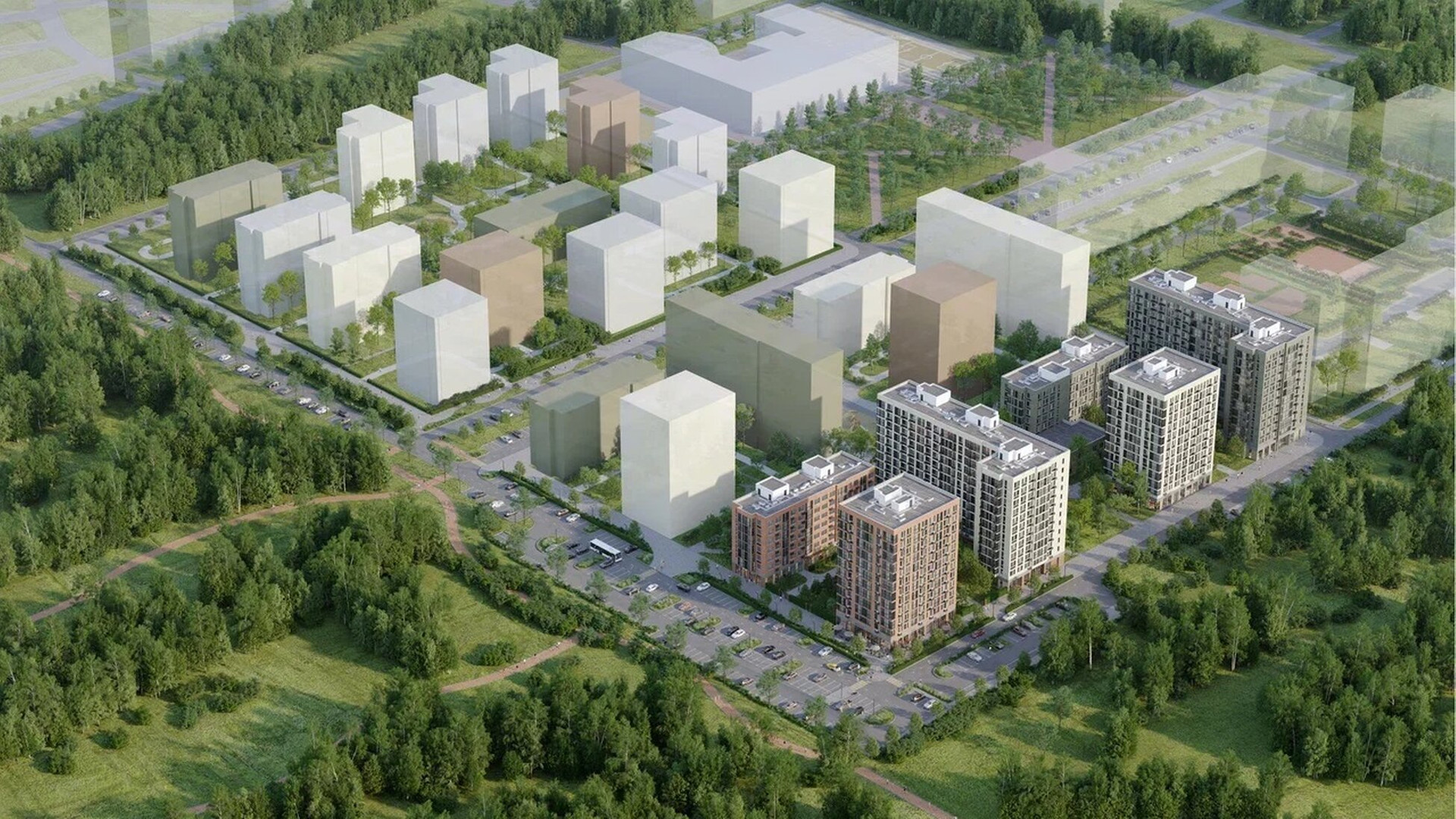 Современный среднеэтажный жилой комплекс с полноценной инфраструктурой на территории комплекса.