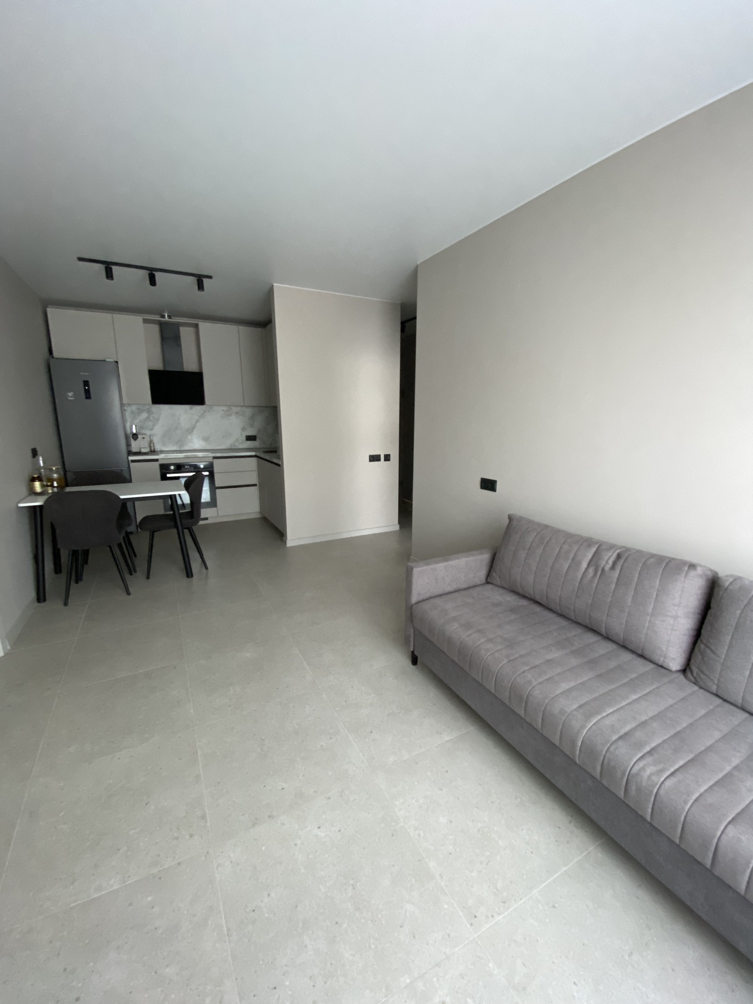 Туалет, ванная, кухня-гостиная керамогранит, теплые полы.