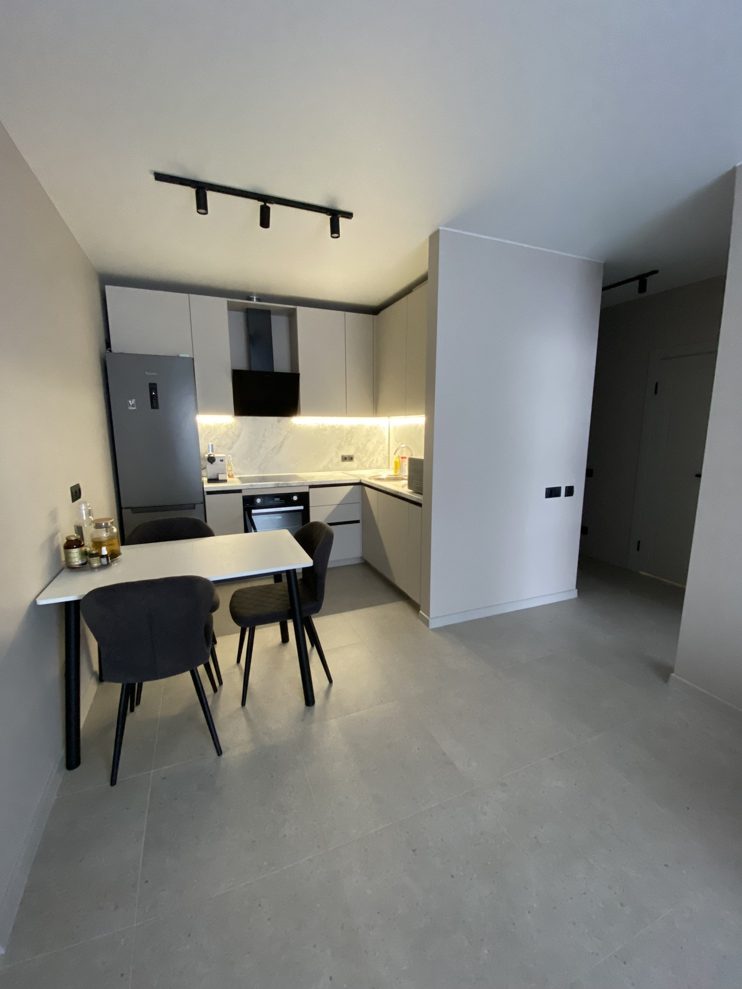 Кухня остается со всей встроенной техникой Hotpoint Ariston, кухня вся с доводчиками.