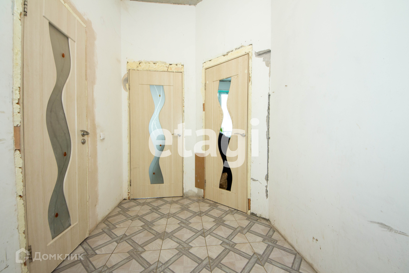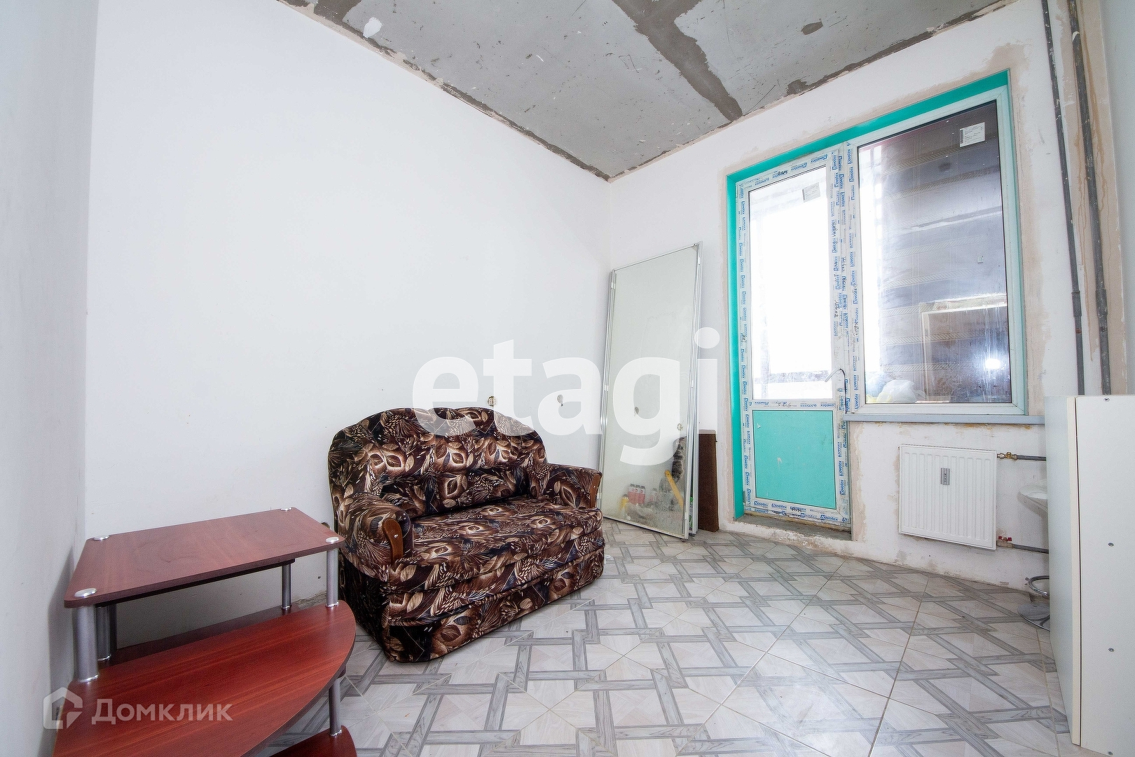 Сделаны полы, положена плитка в коридор и ванну, в комнате керамогранитная плитка. Стены готовы к покраске или обоям. Санузел отделан плиткой.