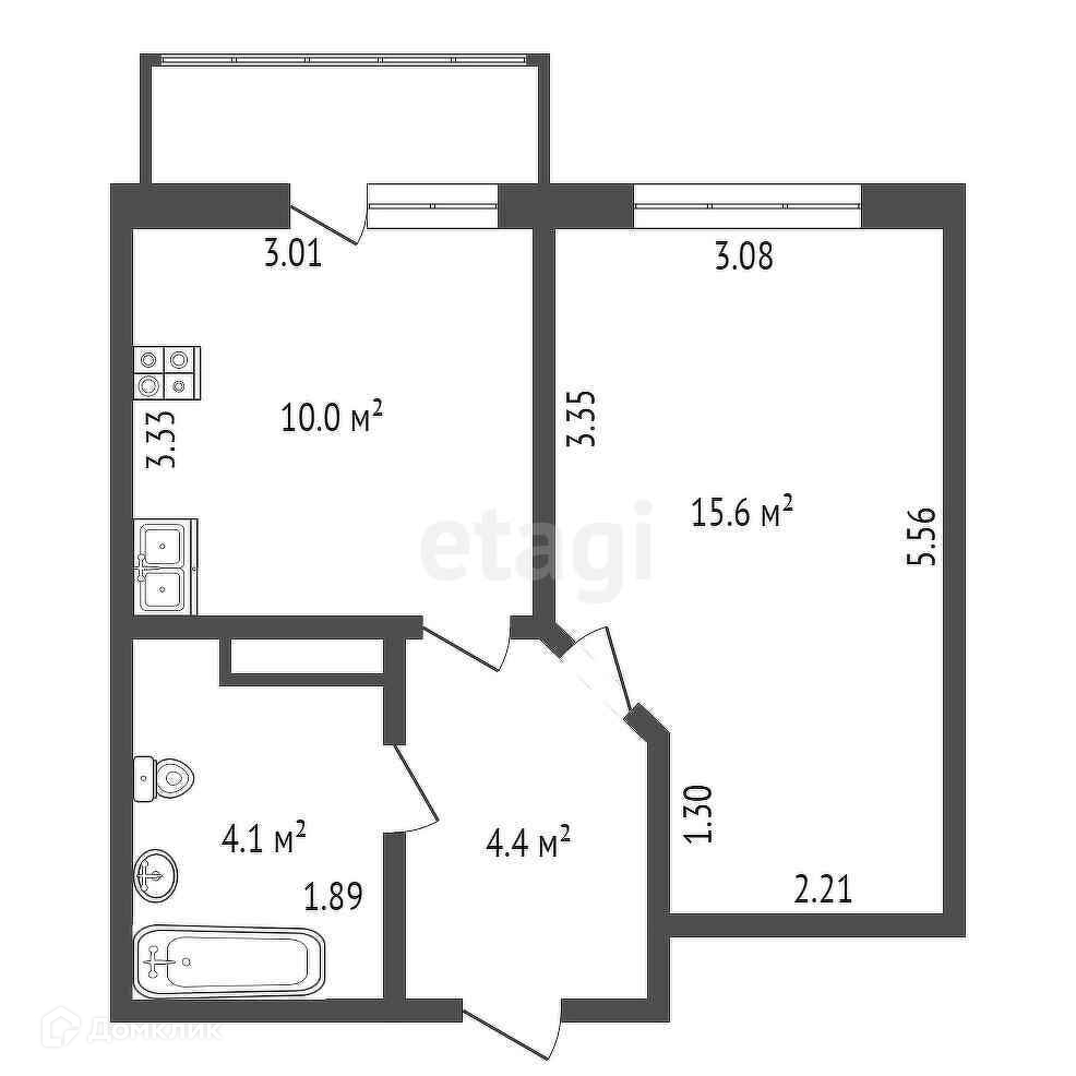 Жилая площадь 15.6 м2