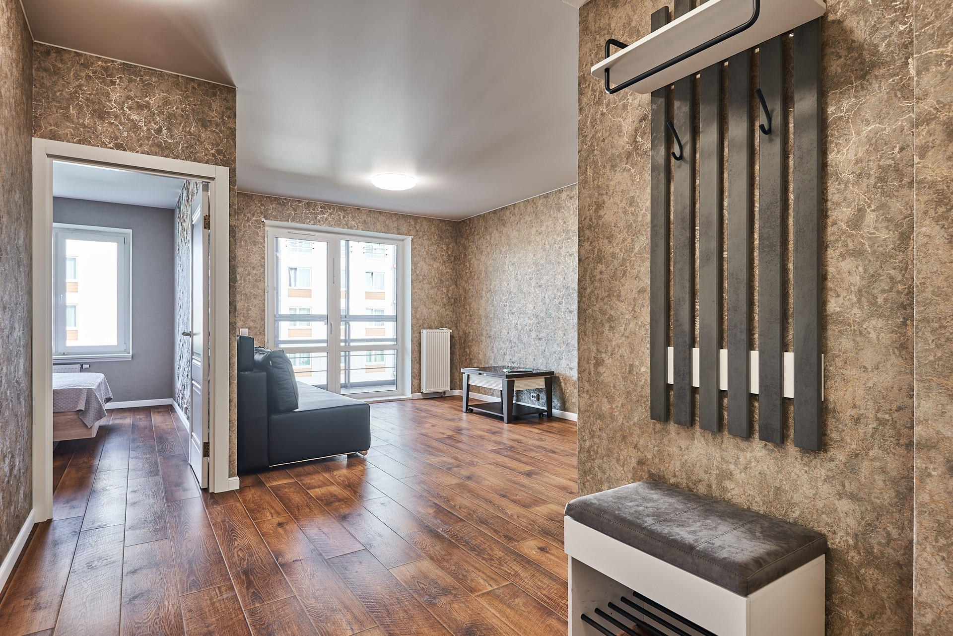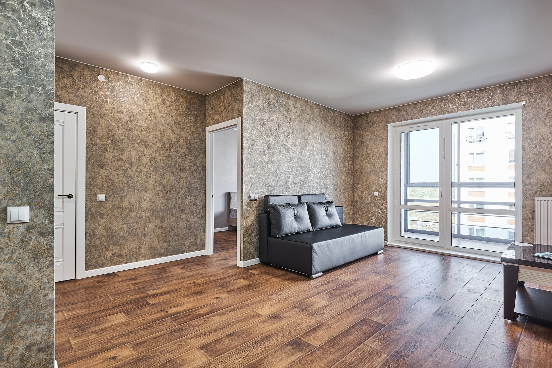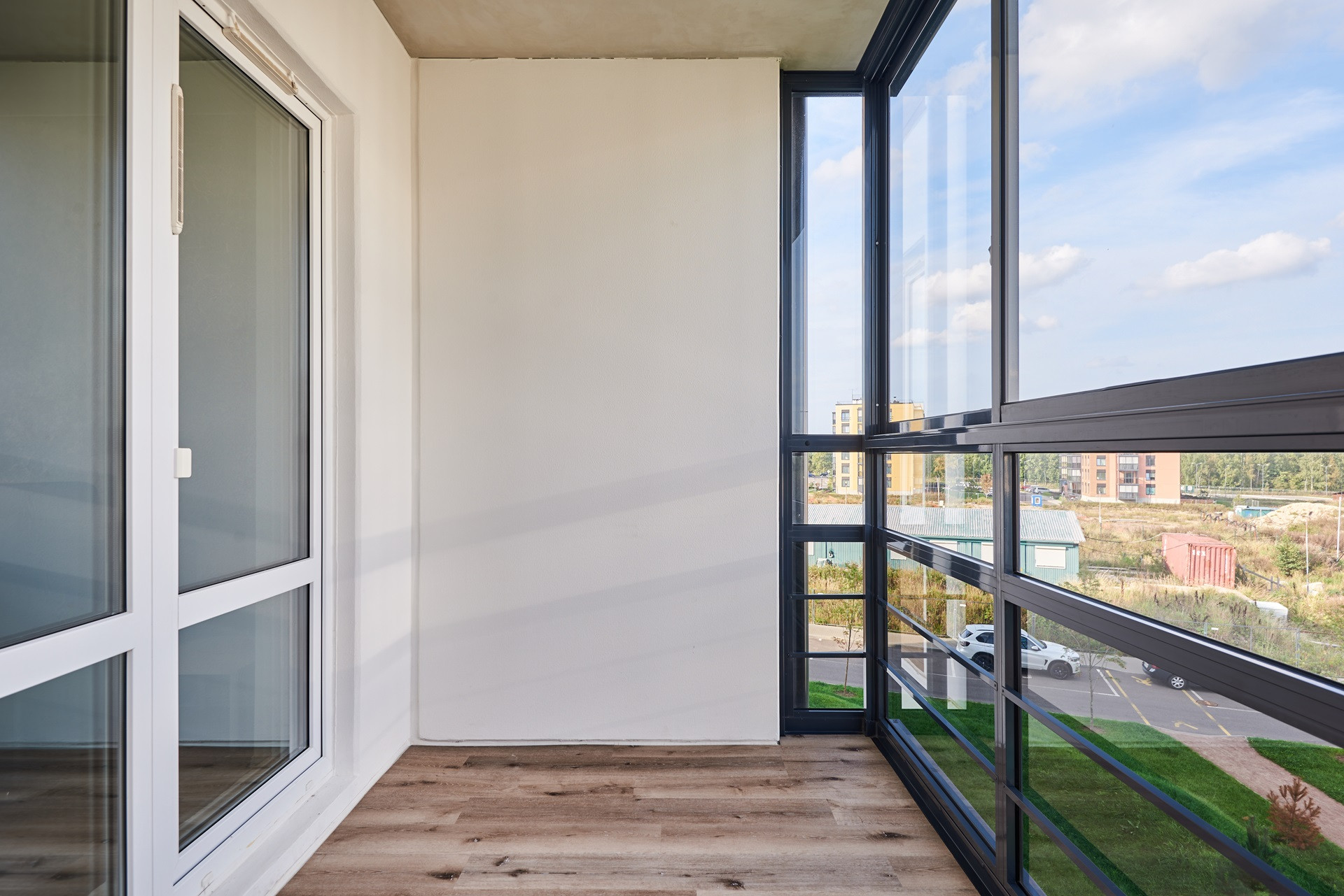 Большая застекленная лоджия – отдельная лаунж-зона с панорамой в зеленый бульвар