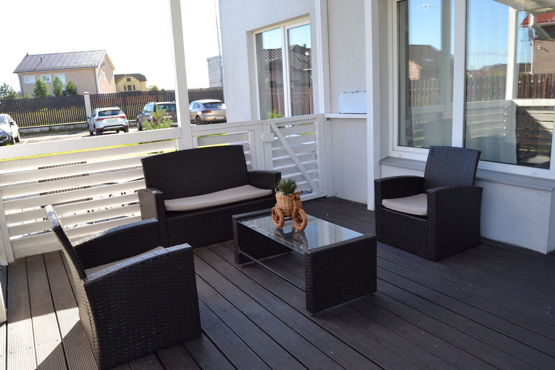 Произведена качественная внутренняя отделка, встроенный кухонный гарнитур в классическом стиле выполнен по индивидуальному проекту, качественная сантехника в санузлах, отдельная гардеробная зона расположена на первом этаже под лестницей и в спальни на втором этаже.