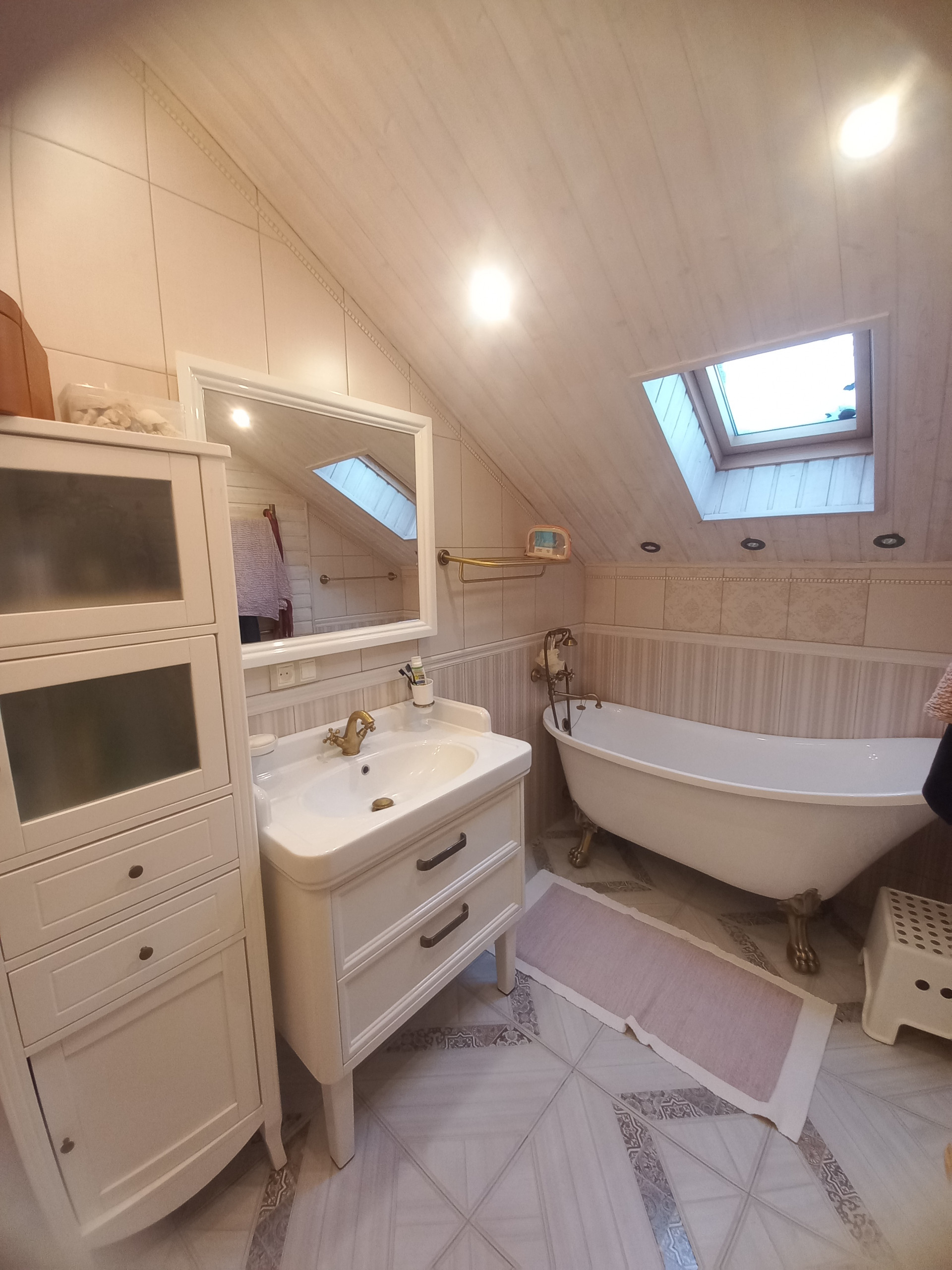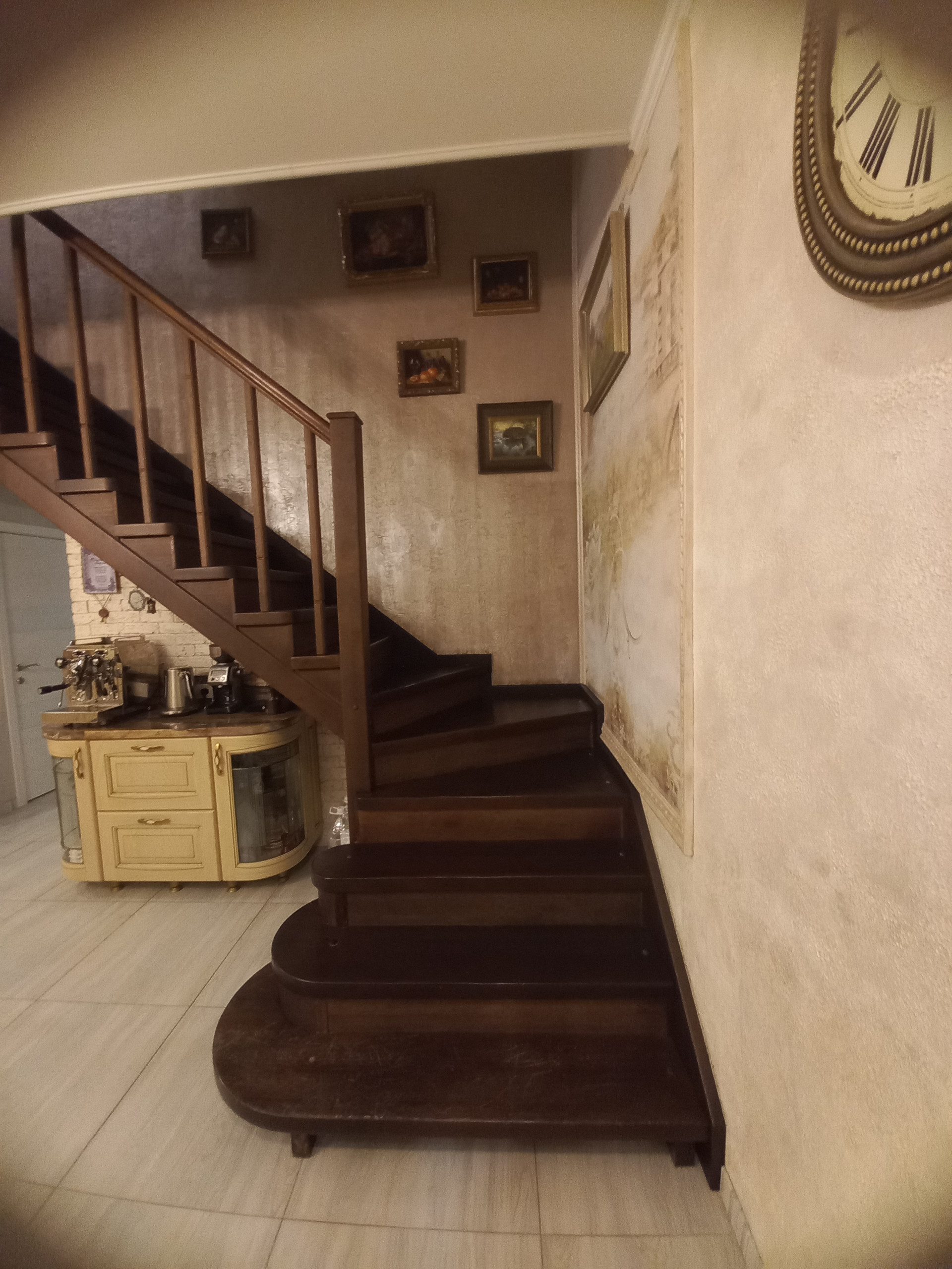 На первом этаже : функциональная прихожая , кладовка, совмещенный сан.узел с душевой кабиной, бойлерная, просторная кухня- гостиная 29м2, кабинет 12м2, стильная спальня с камином 20м2, функциональный холл с местами хранения и с выходом во внутренний благоустроенный дворик. На первом этаже установлены водяные теплые полы с возможностью регулировки. Лестница, которая ведет на второй этаж не крутая, удачно вписалась в интерьер кухни-гостиной и выполнена из натурального дерева. На втором этаже расположены три комнаты 16м2, 11м2 и 11м2 с оригинальными мансардными окнами, гардеробная и просторный совмещенный сан. узел с ванной.