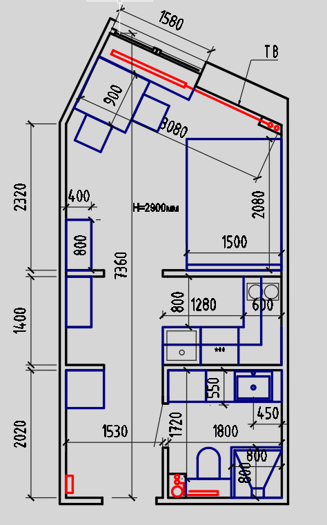 Высота потолков 2.9 м