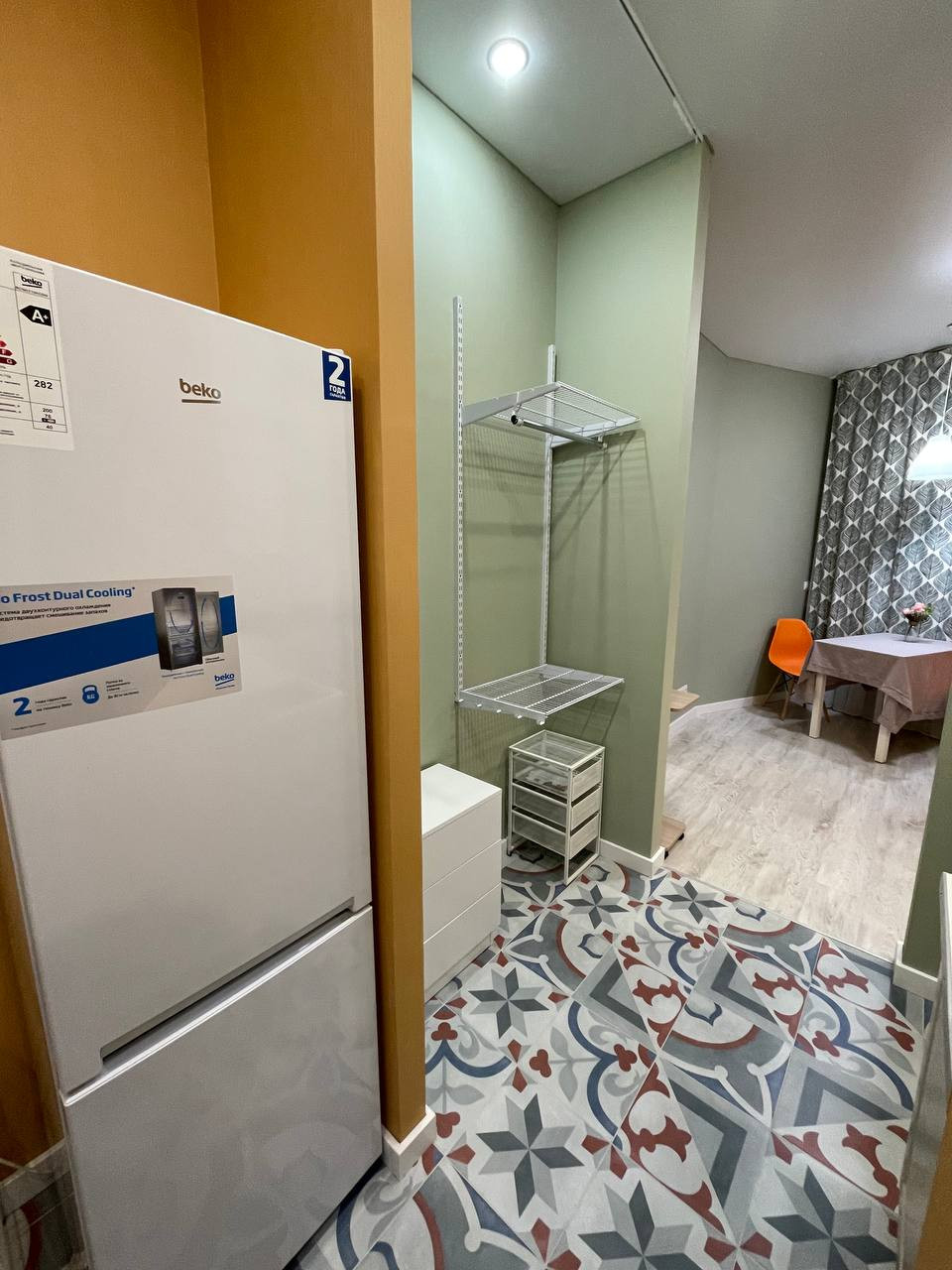 Установлена вытяжка, холодильник no frost, плита двухкомфорочная.