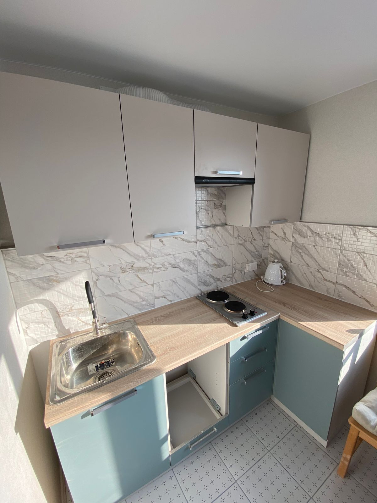 В квартире выполнен свежий отличный ремонт с большой кухней гостиной. На кухне встроенная мебель, холодильник, плита, микроволновая печь, обеденный гарнитур, диван. В комнате диван-кровать, шкаф. Квартира сдается на очень длительный срок, т.ч. мебель можно будет докупить.