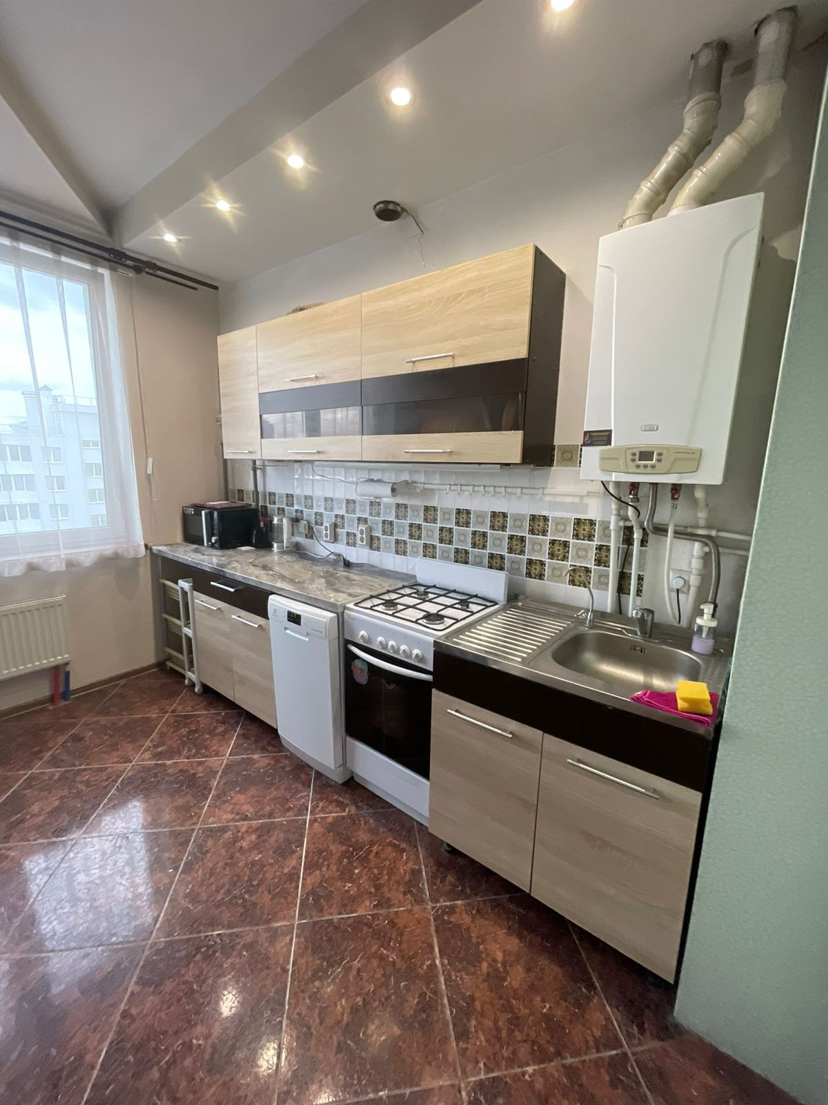 Квартира находится в закрытом жилом комплексе, въезд на территорию оборудован шлагбаумом, территория просматривается камерами. Квартира просторная, комфортная, уютная, светлая, с современным ремонтом. В квартире есть все необходимое для проживания: диван, 2 кресла, гардеробная, встроенная кухня. Есть вся необходимая бытовая техника: телевизор, 2- камерный холодильник, микроволновая печь, газовая плита с духовкой, кулер для воды, посудомоечная и стиральная машины. Установлен газовый котел, следовательно всегда будет горячая вода, температуру воды можно регулировать. По всей площади квартиры, включая балкон, установлены теплые полы.