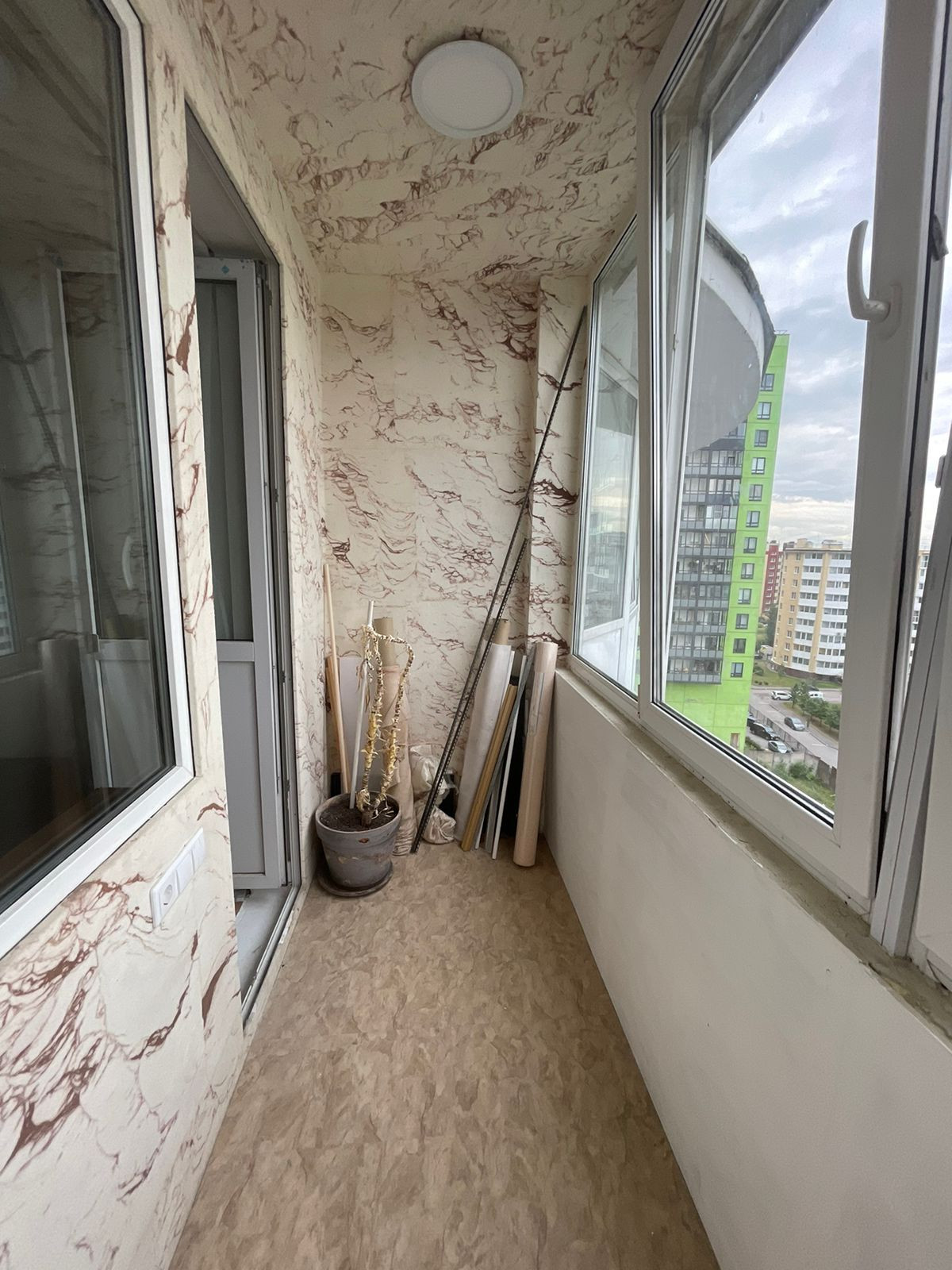 Окна квартиры выходят во двор. Двор просторный, чистый, есть места для парковки автомобиля.