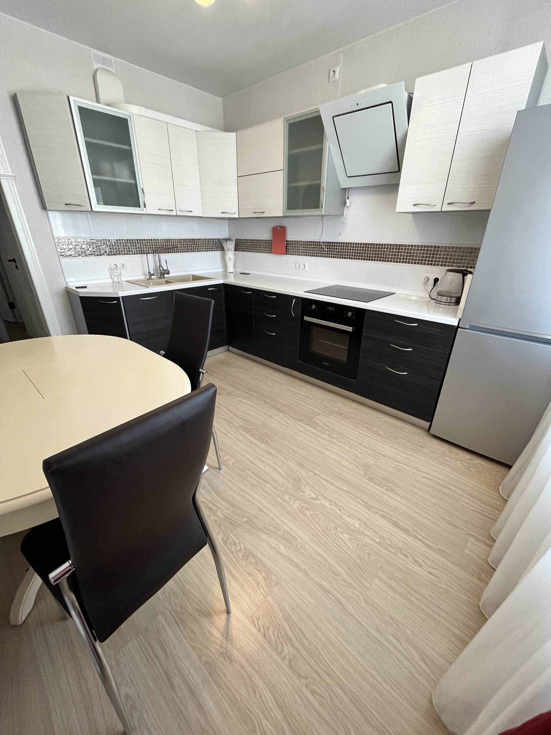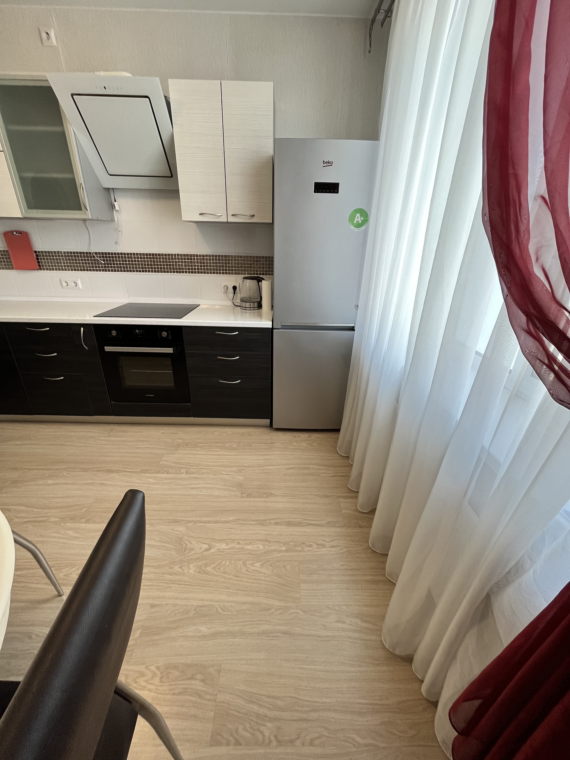 Дом и квартира: 2к. квартира в ЖК "Радужный`. Панельный дом 2014 года постройки. В соседнем дворе находятся школа 7 и детский сад. Два лифта в подъезде - грузовой и пассажирский. Площадь квартиры 59,2 м2 плюс две застекленные лоджии (3,0+3,4 м2) с выходом из комнат, направление север и юг. Кухня 11,1 м2 с кухонным гарнитуром, варочной поверхностью, духовым шкафом, вытяжкой и посудомоечной машиной, микроволновой печью, чайником, комплектом посуды. Жилые комнаты площадью 15,5+14,2 м2. В каждой комнате двуспальный диван. Санузел раздельный. Водонагреватель на случай сезонного отключения воды. На полу в комнатах, коридоре, кухне и прихожей - ламинат и паркетная доска; ванная комната и туалет - кафель, установлен теплый пол. Вместительная гардеробная. Натяжные потолки. На воду, электричество и подачу тепла в квартиру установлены индивидуальные счетчики. Квартира двусторонняя. Коммунальные платежи 3 000-6 500 рублей в зависимости от расхода и сезона. Тамбур на две квартиры. Кладовка на этаже для хранения вещей.