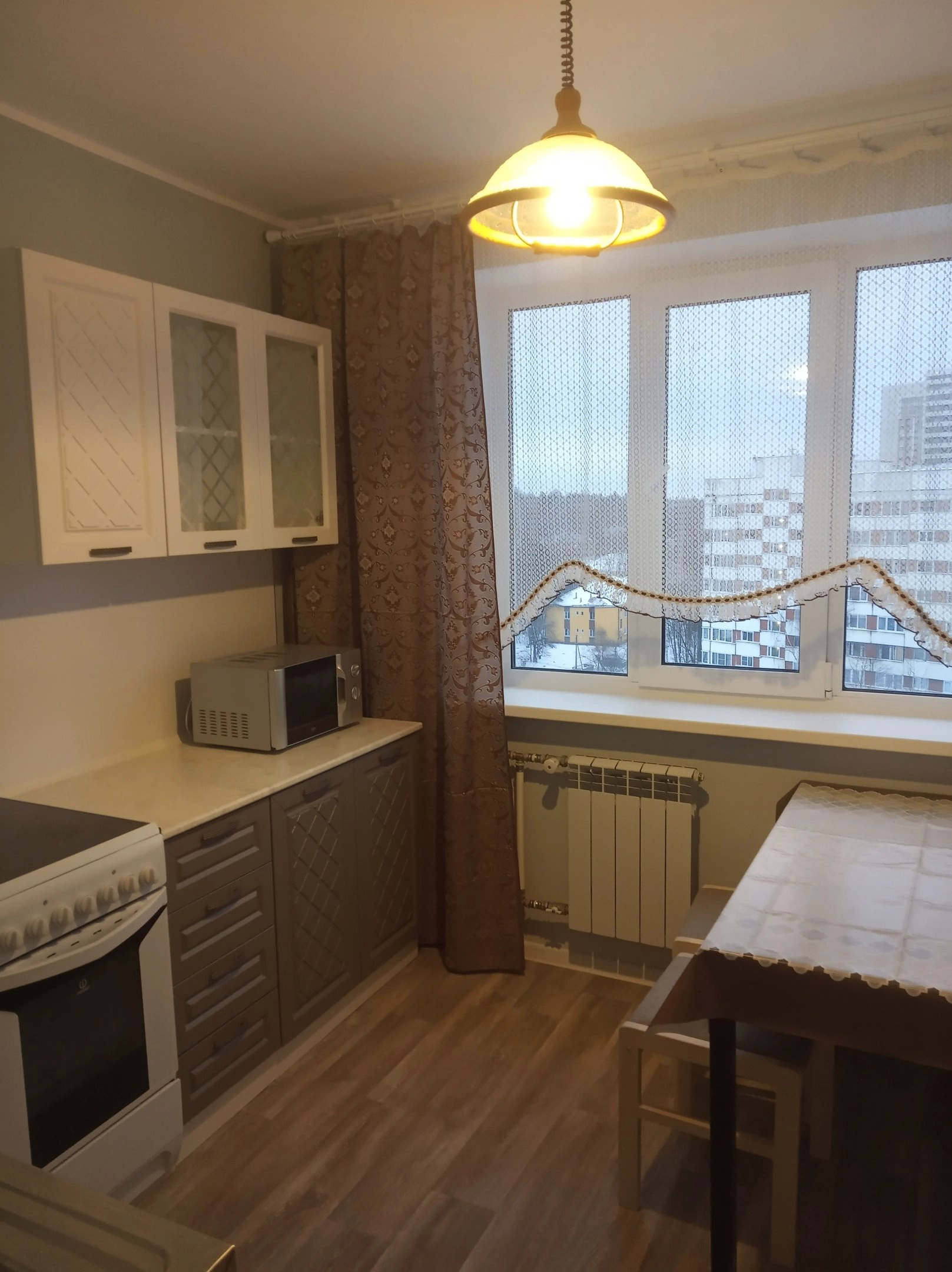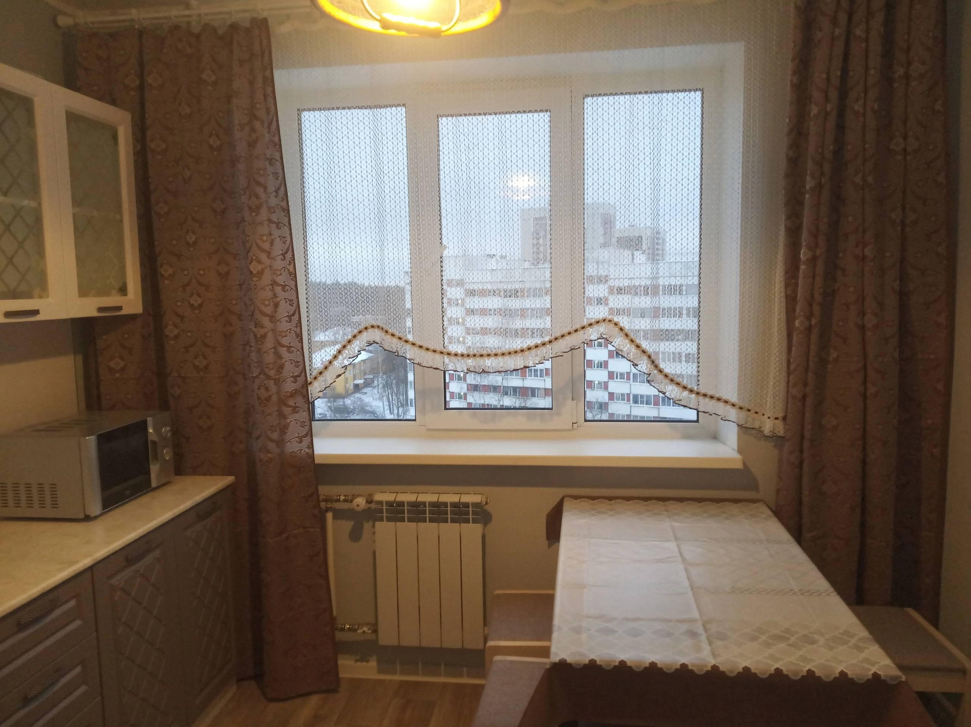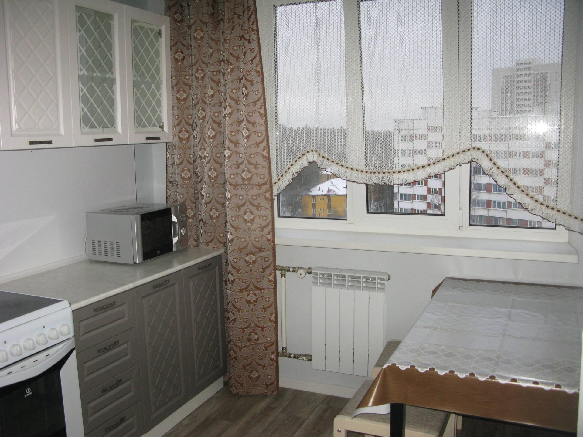 Установлены стеклопакеты, итальянские батареи, сантехника, счётчики, электроплита, новая встроенная кухня, холодильник, новая стиральная машинка. Есть балкон, кладовка, антресоль, три вместительных шкафа, двуспальная кровать с ортопедическим матрасом и раскладывающийся диван-книжка.