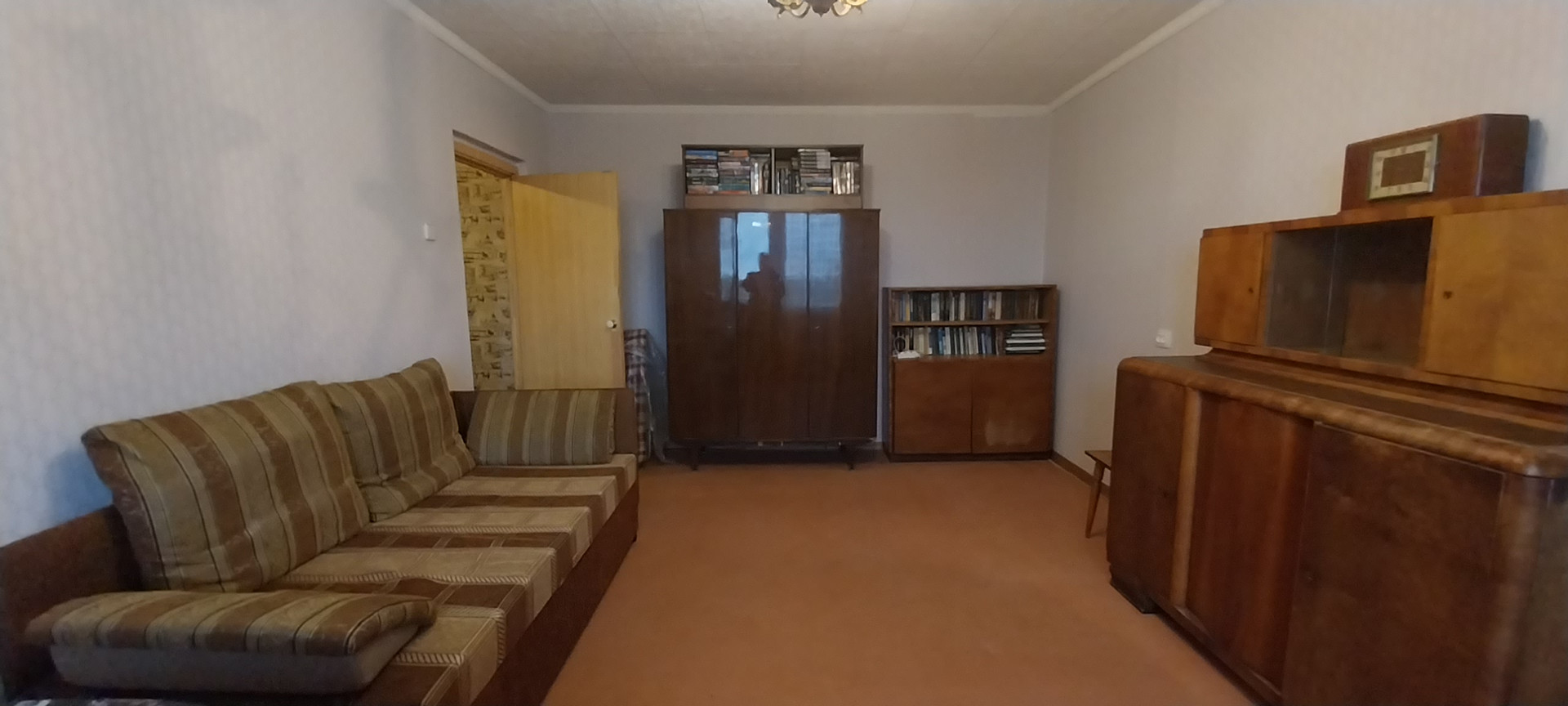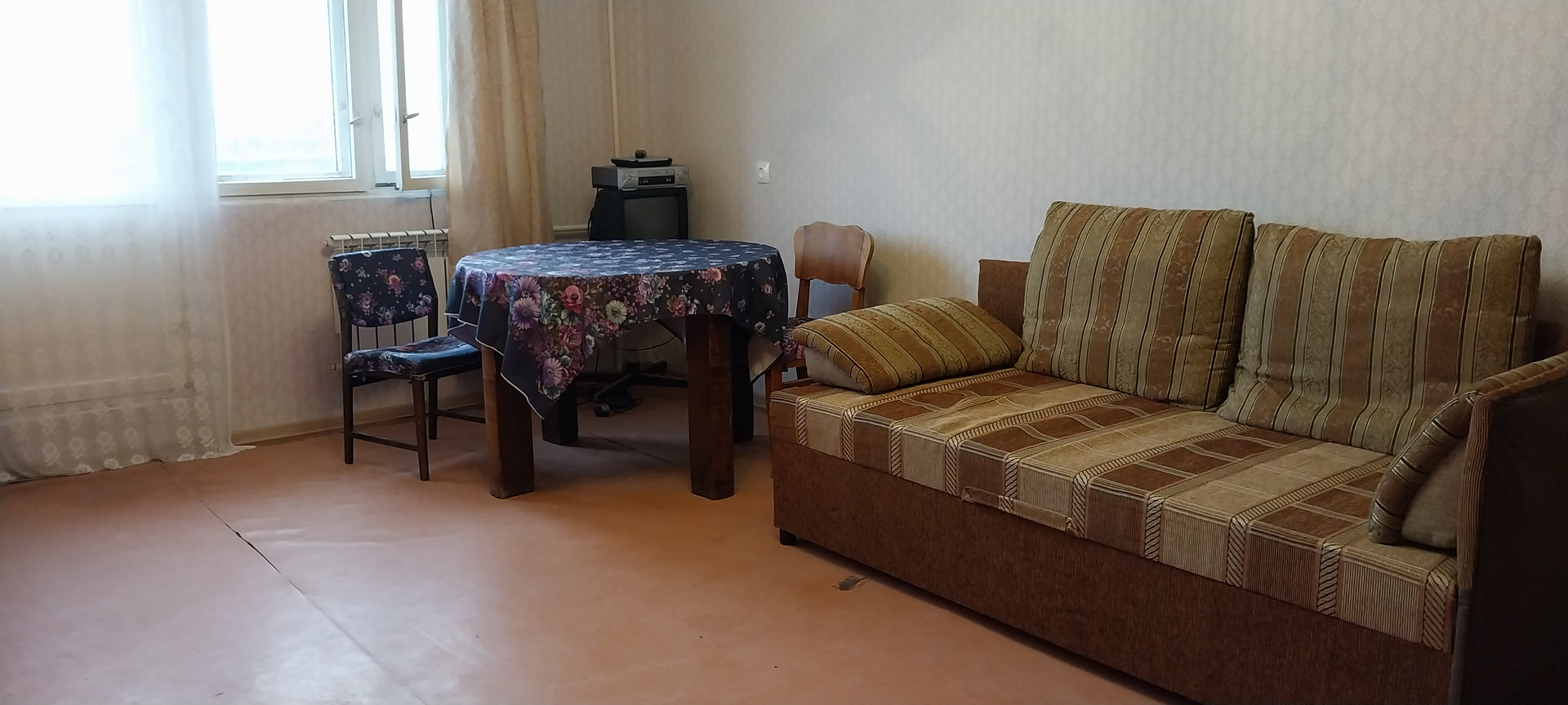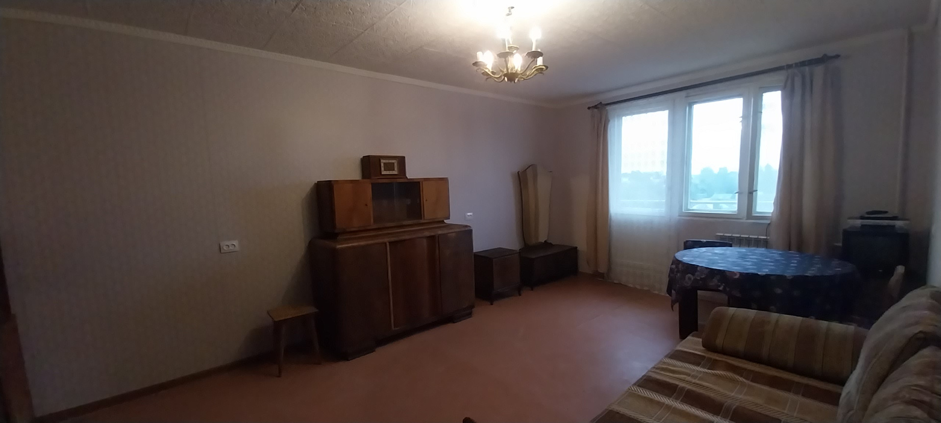 Квартира 39 кв.м. очень просторная. Комната 24 метра, кухня  и прихожая правильной формы, раздельный санузел. В квартире жили пожилые люди и раньше не сдавалась. Ремонт выполнен самый простой. Мебель почти антиквар. Но все  необходимое для проживания есть, вся техника работает. Квартира сдается на длительный срок, т.ч. мебель для большой семьи можно будет докупить.