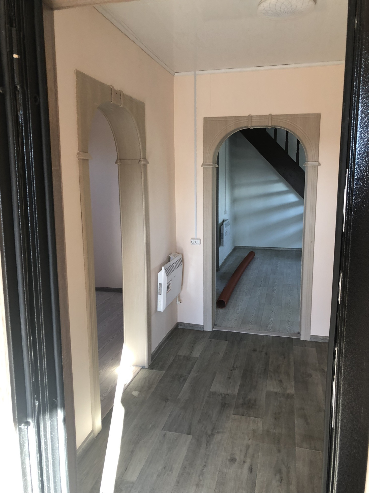 Продаётся новый дом, на 1-ом этаже санузел, прихожая, кухня, спальня, зал. На втором этаже одно помещение (свободная планировка). Канализация установлена, вода проведена, отопление электрическое.