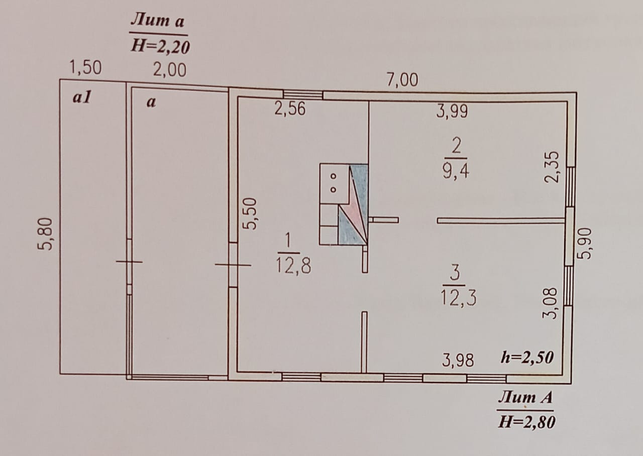 Дом 34,5 м2 построен из бревна на ленточном фундаменте. Отопление печное.