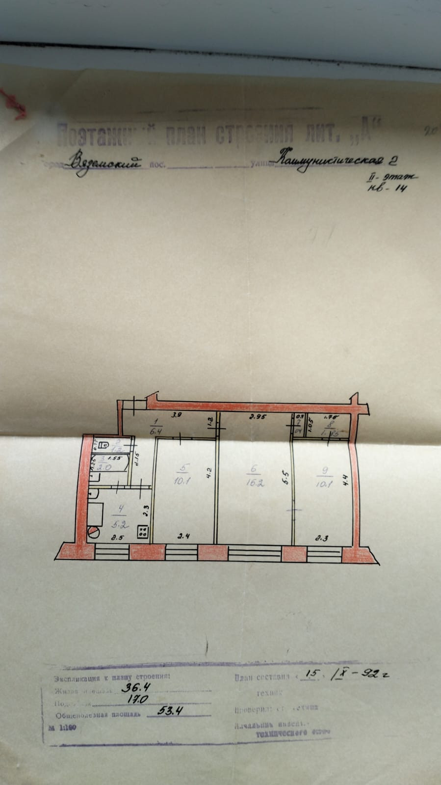 Общая площадь 53.4 м2