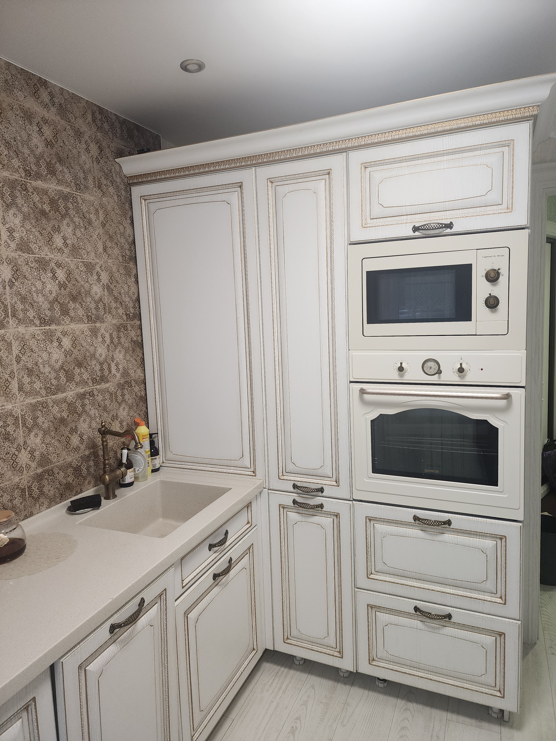 При продаже в квартире остаётся: качественный кухонный  гарнитур со столешницей из камня, два новых кондиционера, новая стиральная машина Samsung с режимом сушки, водонагреватель на 100 литров установлен в 2023 году, большой холодильник с морозильной камерой, вытяжка, шкаф встроенный в идеальном состоянии.