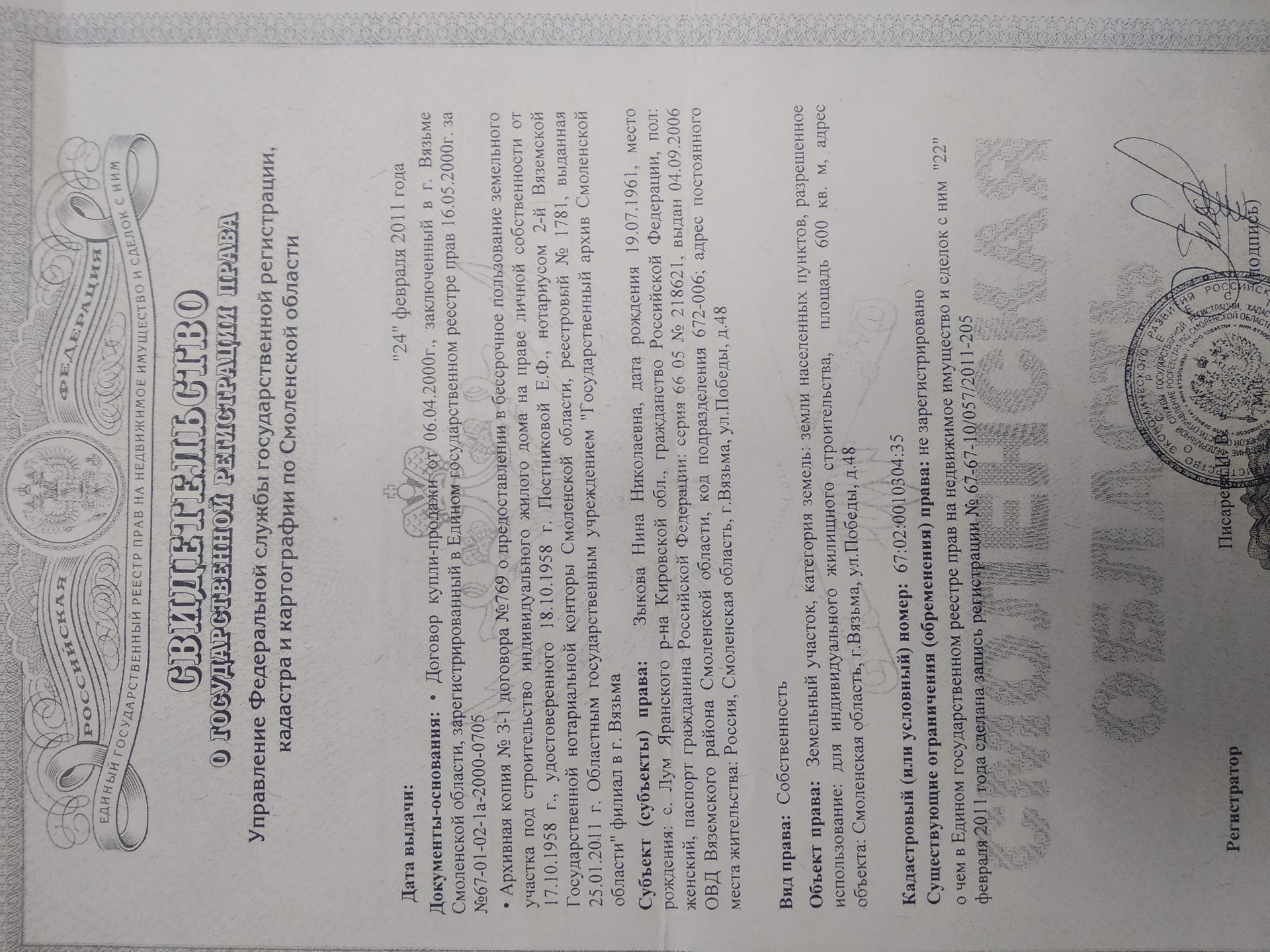 Назначение земли ИЖС