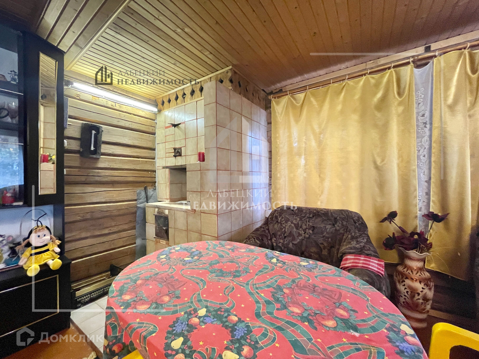 - На первом этаже расположены: кухня(9.7 кв.м), гостиная (31.8 кв.м) с действующей печкой.