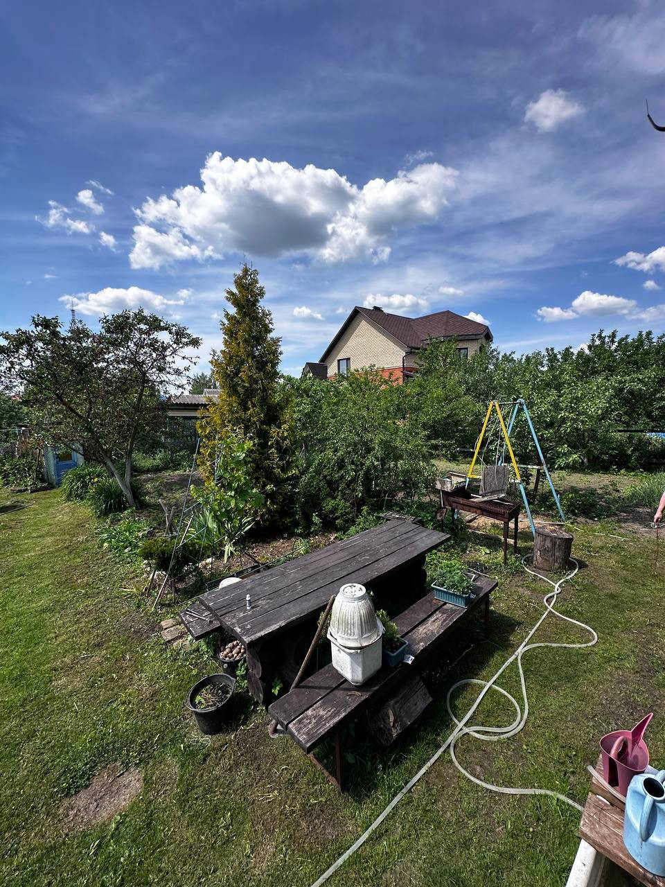Есть теплица, сад.