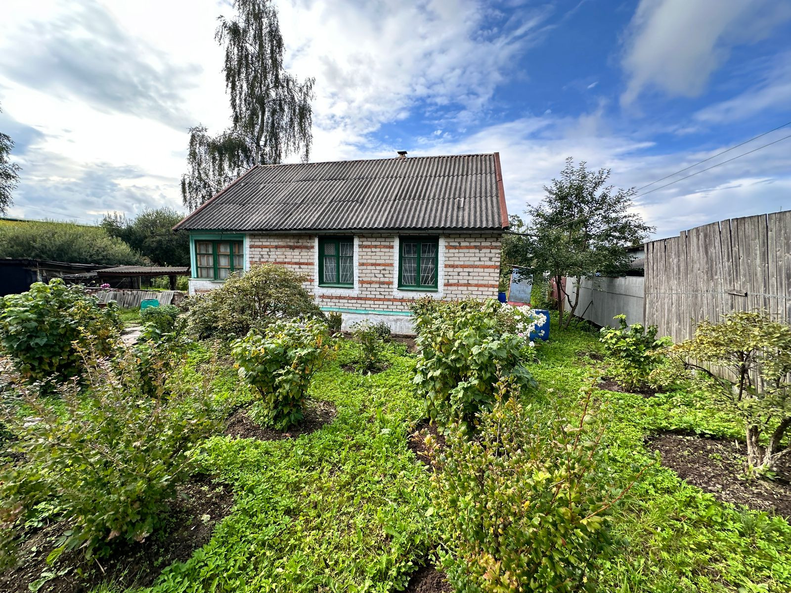 Площадь дома 57,2 кв.м.: Кирпичный дом с пристройкой, включает 3 жилых комнаты и кухню.