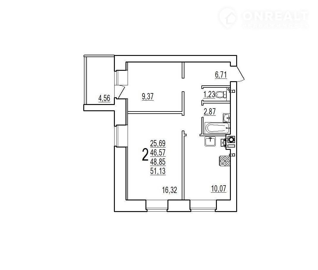 Общая площадь 49 м2