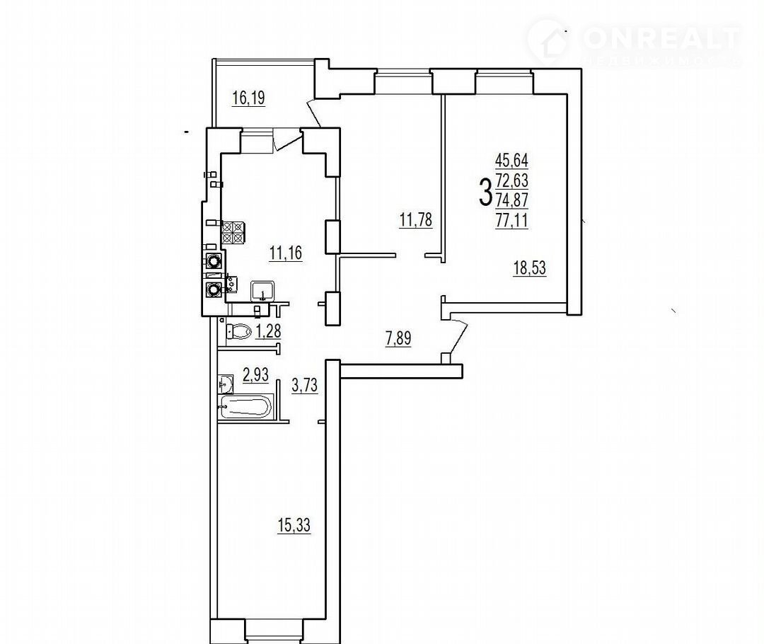 Общая площадь 74.9 м2