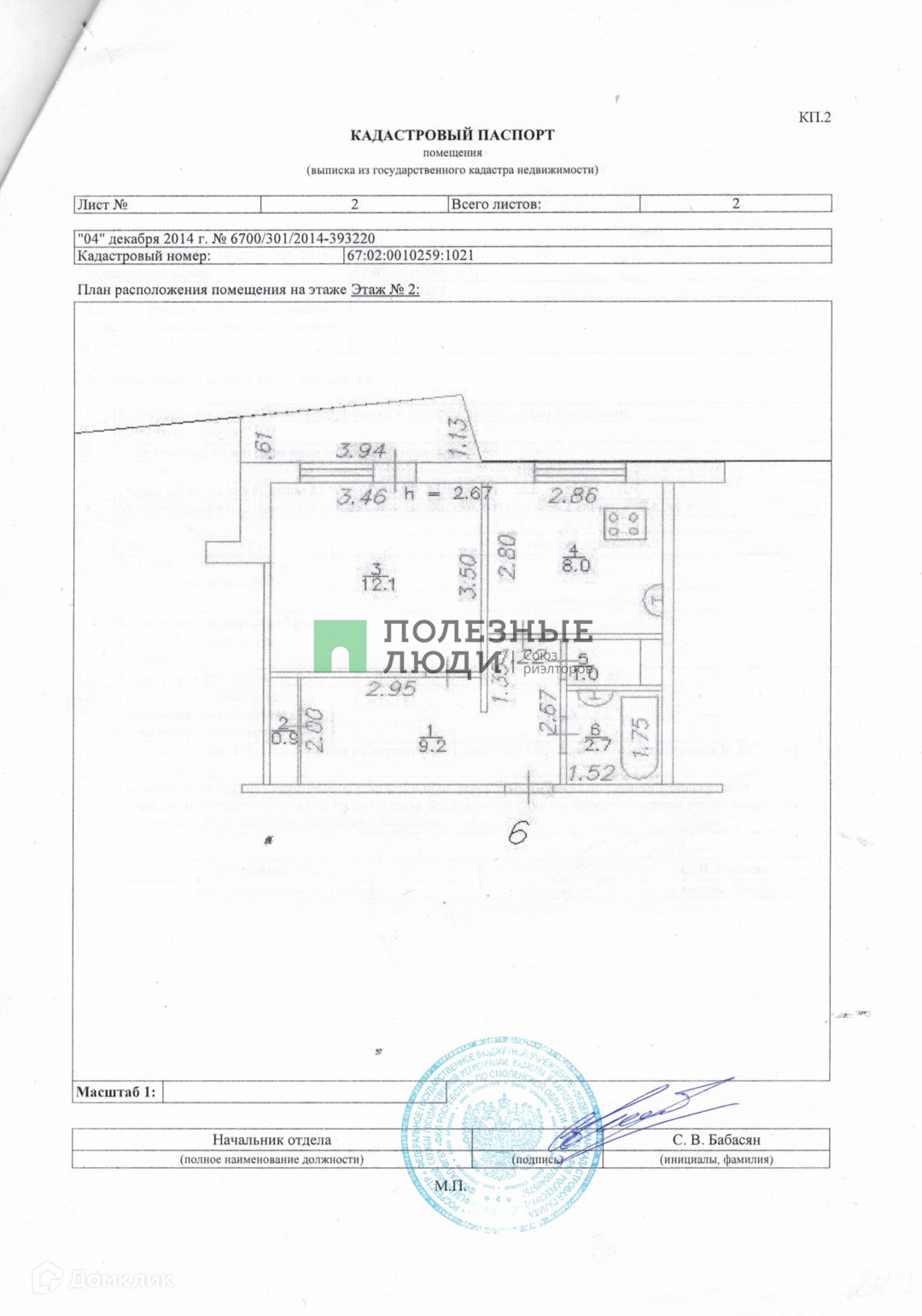 Общая площадь 33.9 м2