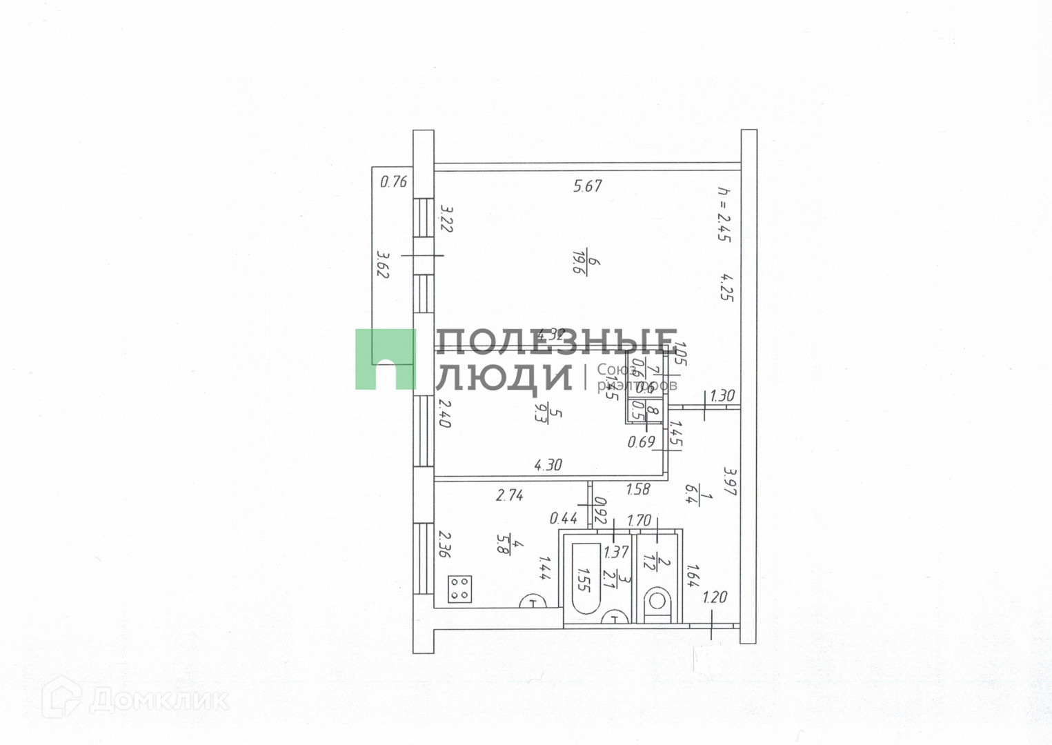 Общая площадь 45.5 м2