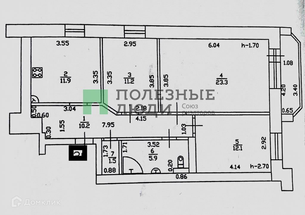 Высота потолков 2.8 м
