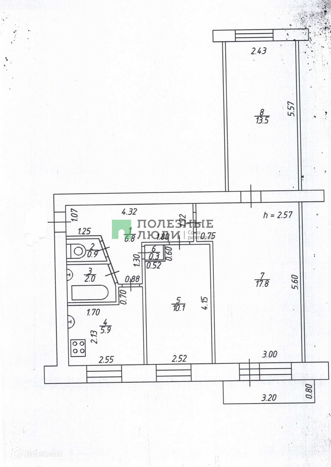 Общая площадь 56.3 м2