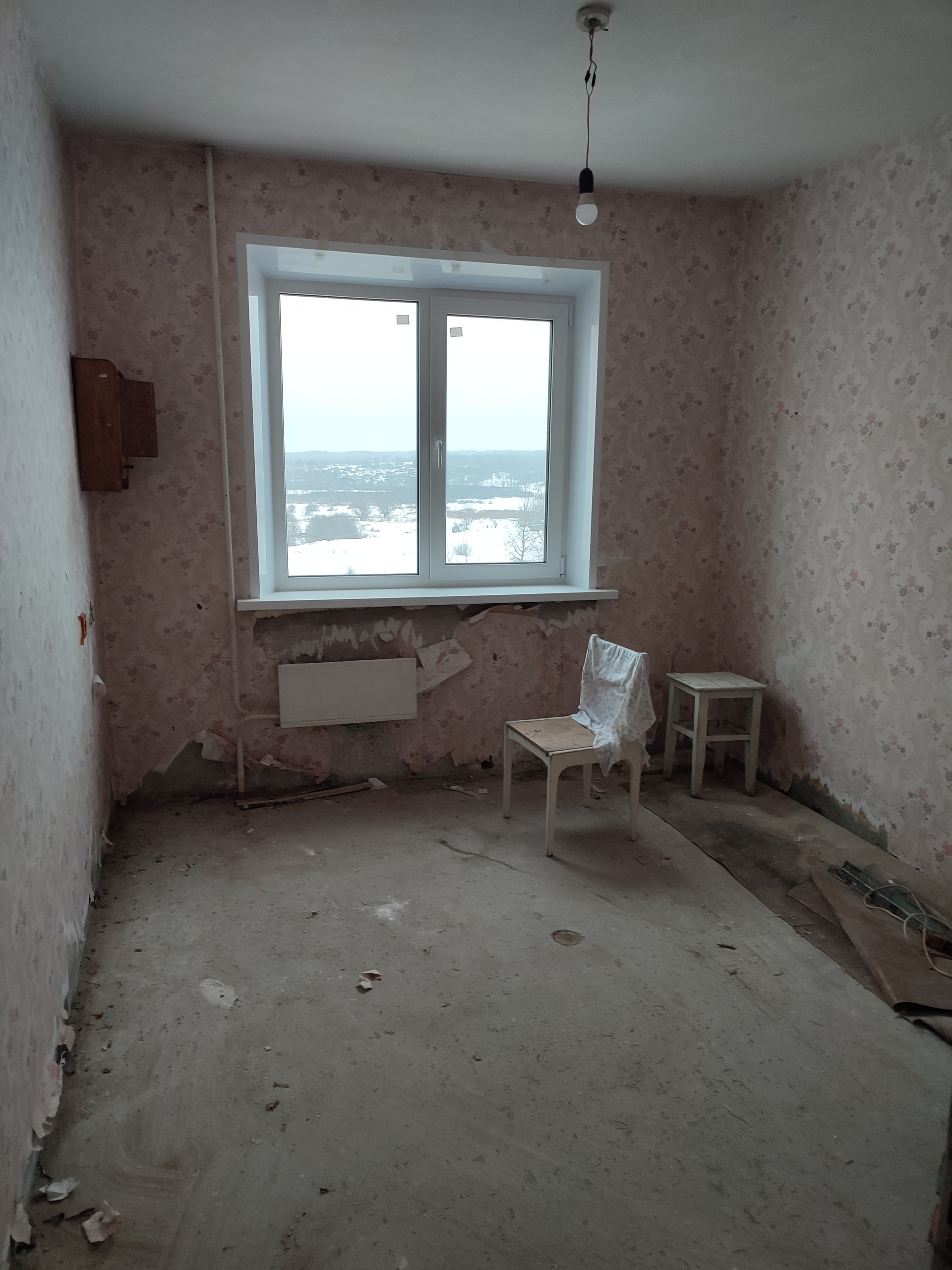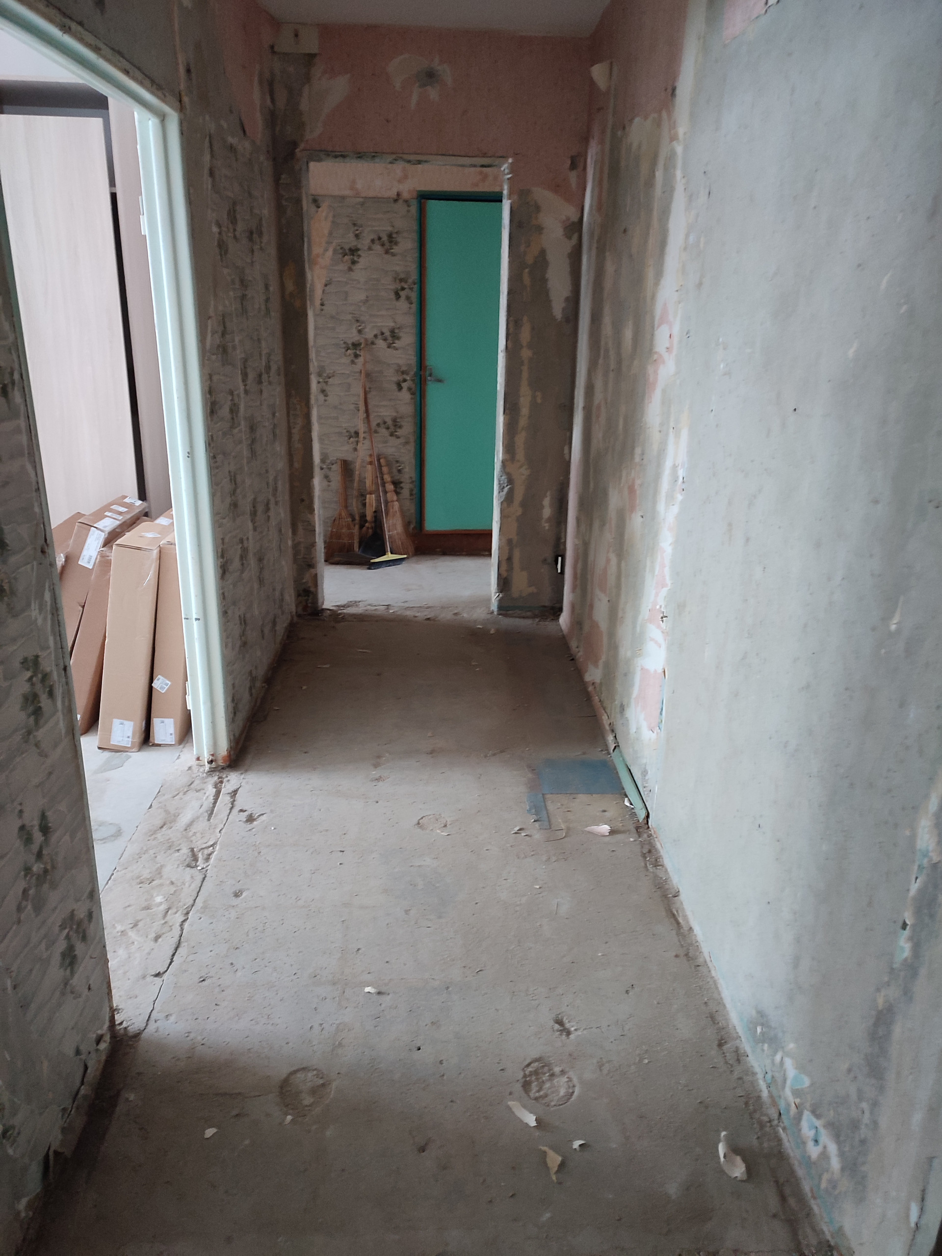 В квартире частичная подготовка к ремонту.