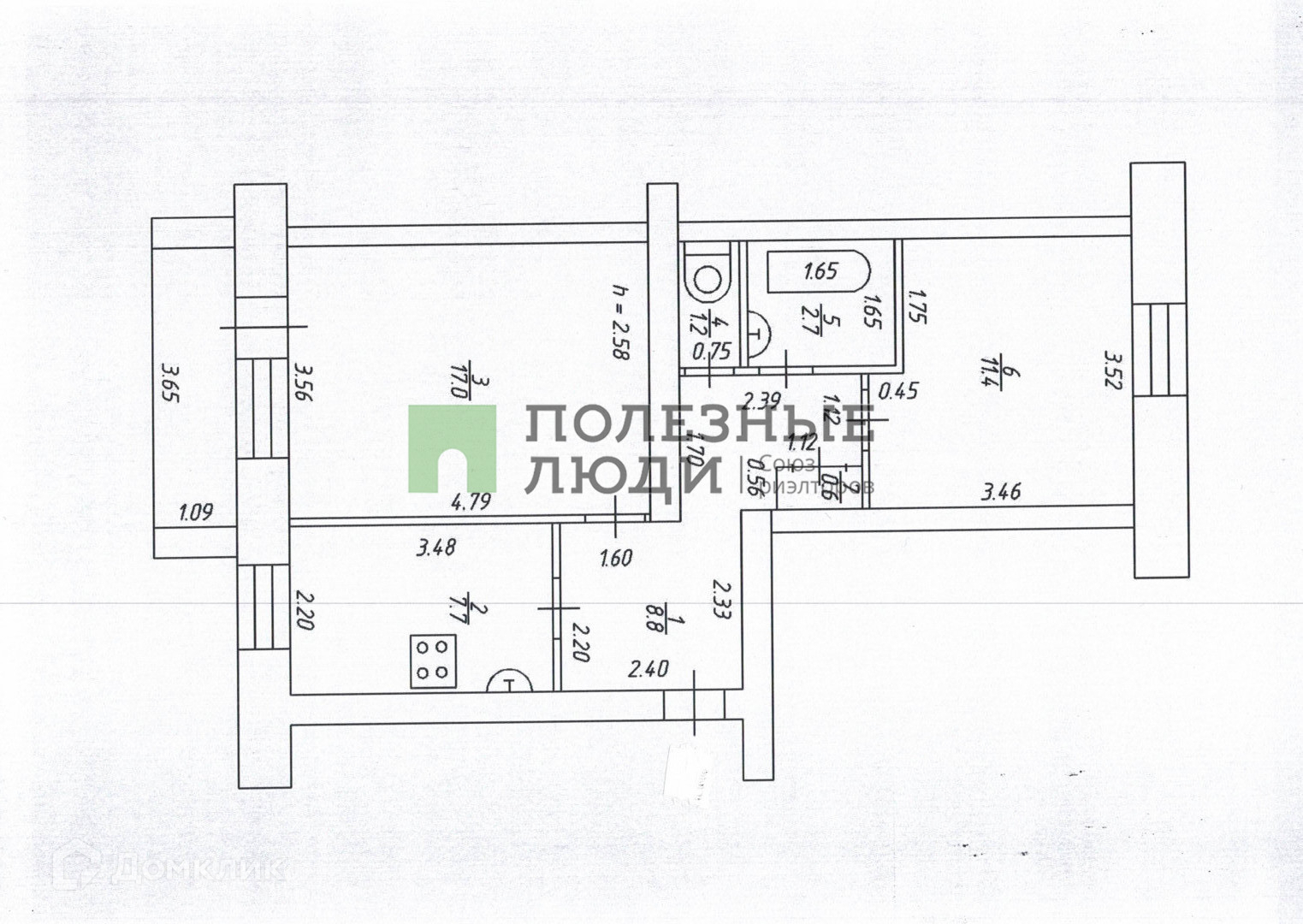 Высота потолков 2.6 м