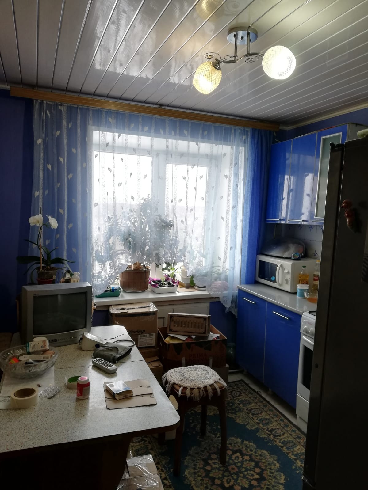 На кухне и в комнате заменены окна на трехкамерные стеклопакеты.