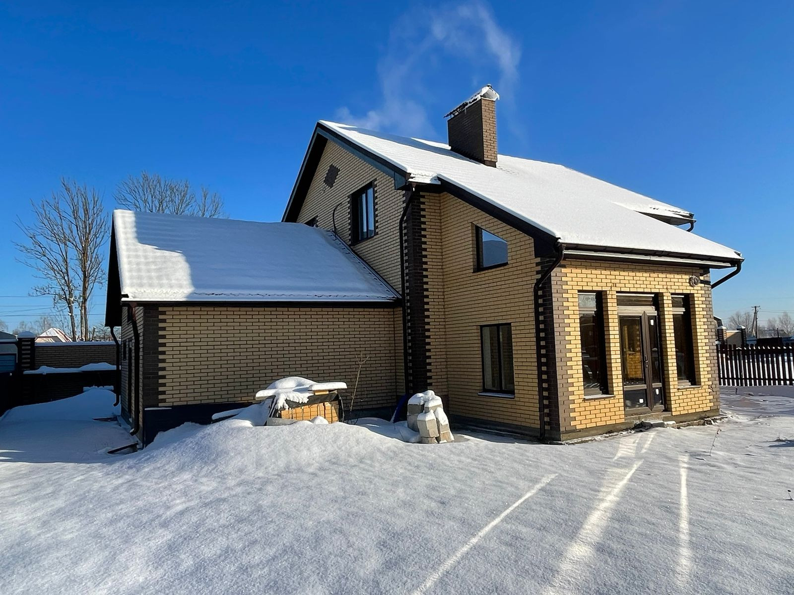 В коттедже 4 спальни, гостиная, кухня и теплая веранда, 2 санузла. Состояние - полностью закончены строительно-монтажные работы. Стены обложены фасадным голицынским кирпичом.  Железобетонные перекрытия между этажами. Установлена монолитная лестница с 1 на 2 этаж. Отделочные работы в доме выполнены под финишную отделку. Выполнена разводка отопления к отопительным приборам и разводка водяного теплого пола. Установлены стеклопакеты, подоконники из камня. Выполнены выводы для установки кондиционеров и оплачены. На кухне и в санузлах полы из керамогранита. Куплена и установлена элитная бытовая, сантехническая и  кухонная техника.