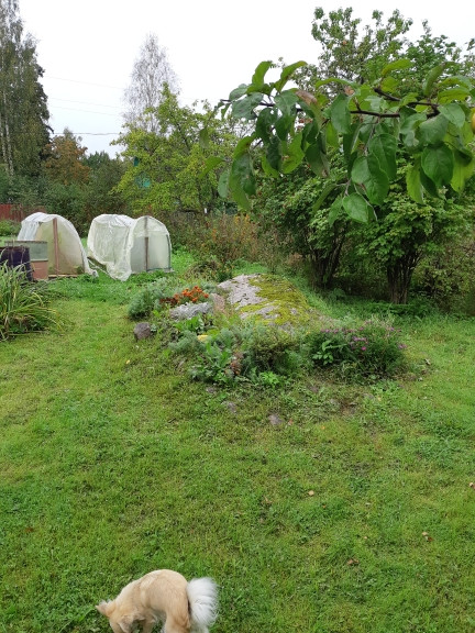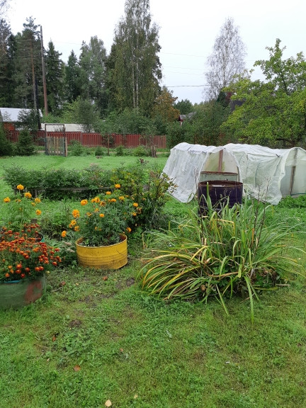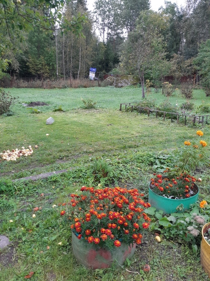 На участке плодово ягодные деревья и кустарники, клубника. Много цветом. По периметру участка забор-рабица и вагонка. Въездные ворота и калитка. Соседи только с одной стороны. До магазина и автобусной остановки 20 мин. До вокзала и центра Выборга 5 км. До Лаппеенранта 10 км.