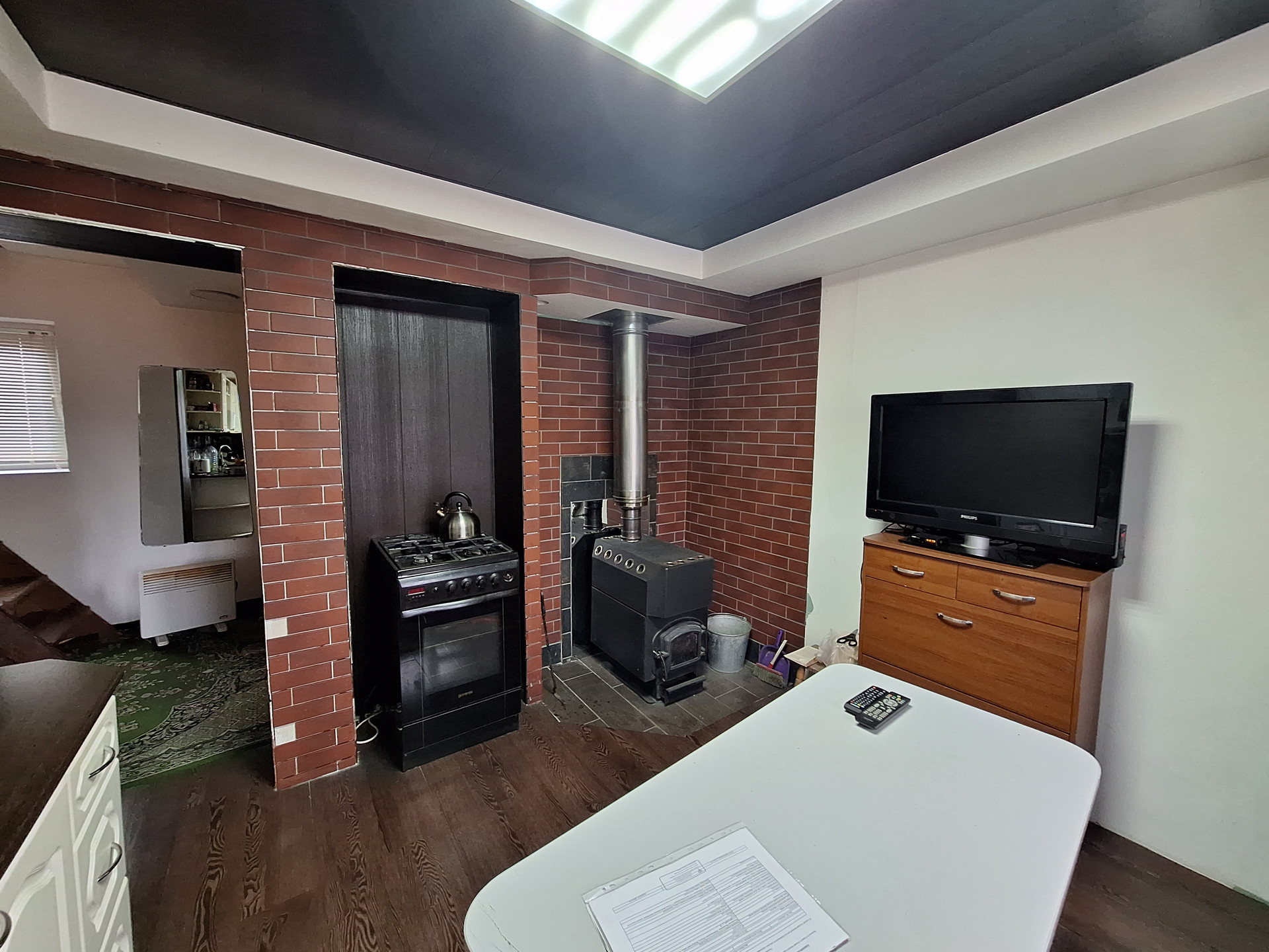Холодная вода - скважина, все документы на скважину в наличии, горячая вода - бойлер, канализация - септик, газ - баллонный, отопление - печное+ электрические батареи. Пока утеплен первый этаж дома.