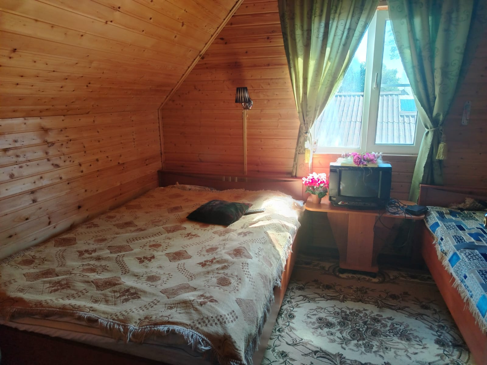* В доме на 1-м этаже имеется биотуалет, сауна и душевое помещение. На 2-м этаже спальня с двумя кроватями и гостиная с угловым диваном-кроватю. Вся мебель в доме в отличном состоянии остается новым владельцам.