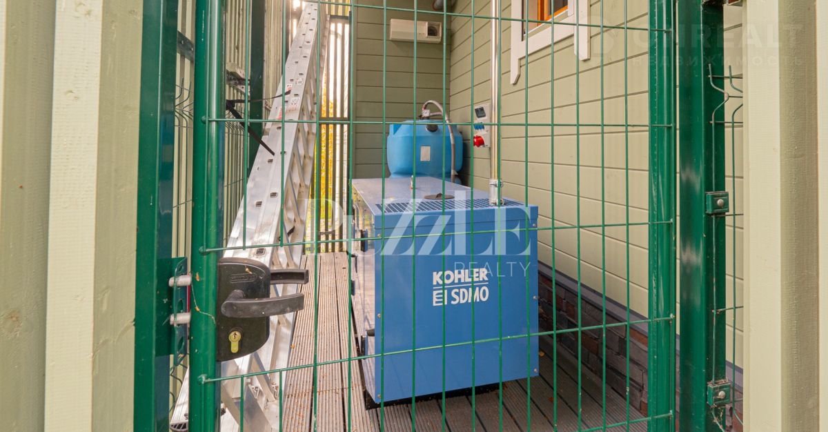 Дом подключен к собственной (!) трансформаторной подстанции мощностью 60 кВт – электричества более чем достаточно для комфортного проживания. Отопление в доме электрическое. На участке есть собственная скважина глубиной 80 п.м. В посёлке есть летний водопровод, который можно использовать для полива. Установлены Локальные Очистные Сооружения (ЛОС). Чтобы не сталкиваться с возможными отключениями электричества подключен дизельный генератор SDМО 16 кВА в качестве резервного источника электроснабжения. Включается генератор в автоматическом режиме в момент отключения напряжения.