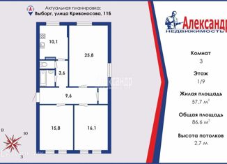 3-комнатная квартира на продажу, 86.6 м2, улица Кривоносова, 11Б