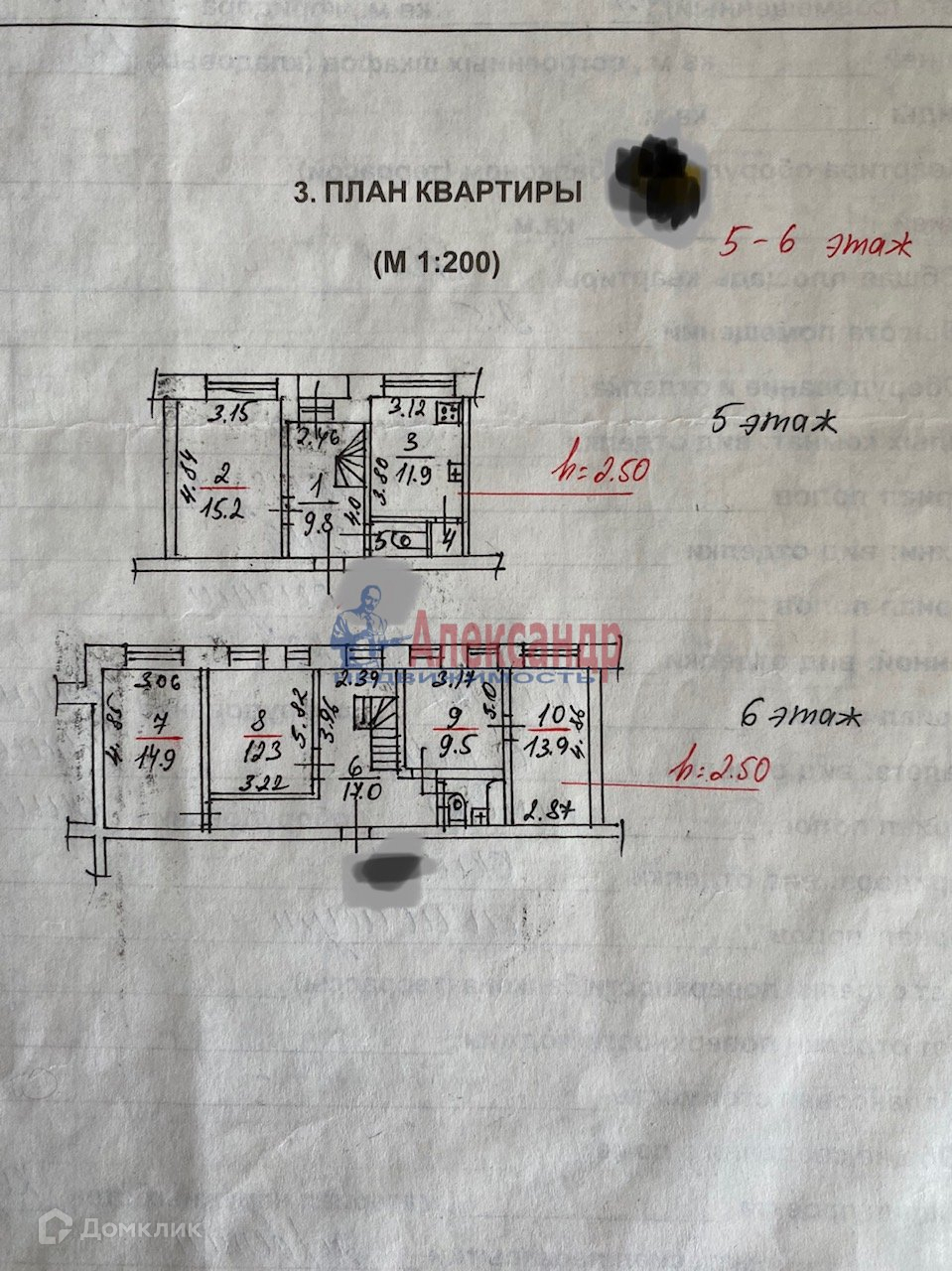Общая площадь квартиры 110,8м2. Квартира занимает 5-й и 6-ой этажи. Высота потолков 2,5м.