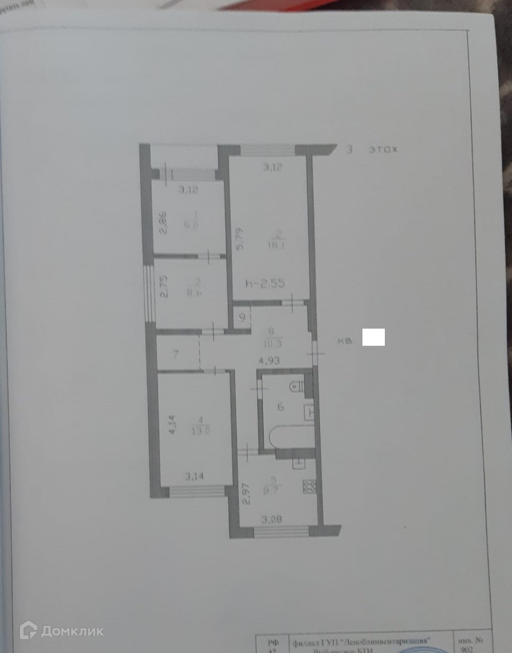 Высота потолков 2.55 м
