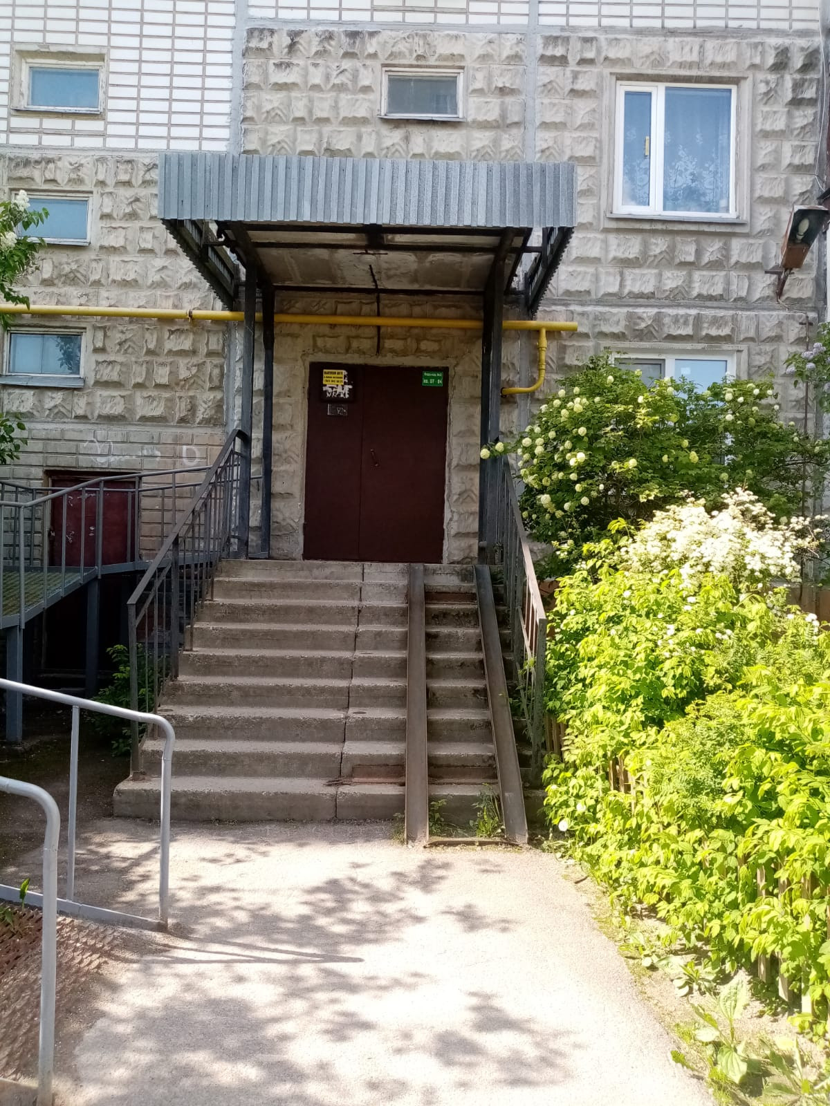 Парадная оборудована пандусом, что удобно для мамы с коляской или для людей с ограниченными возможностями.