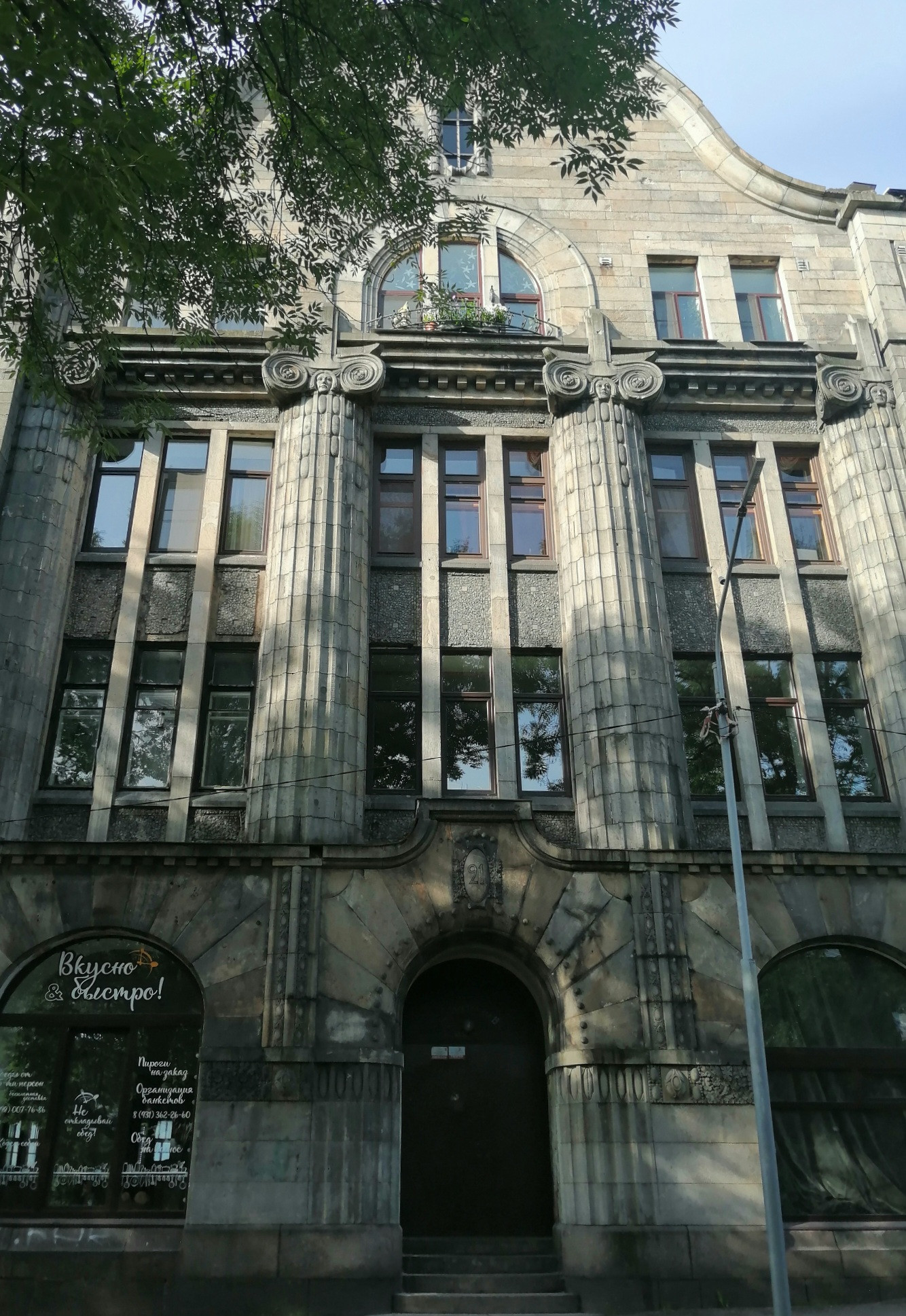 Здание было построено в 1910 году для семьи Теслефф по проекту архитекторов Вальтера Томе и Класа Гюльдена. Архитектурный стиль - северный модерн. Красивый каменный фасад с множеством декоративных элементов.