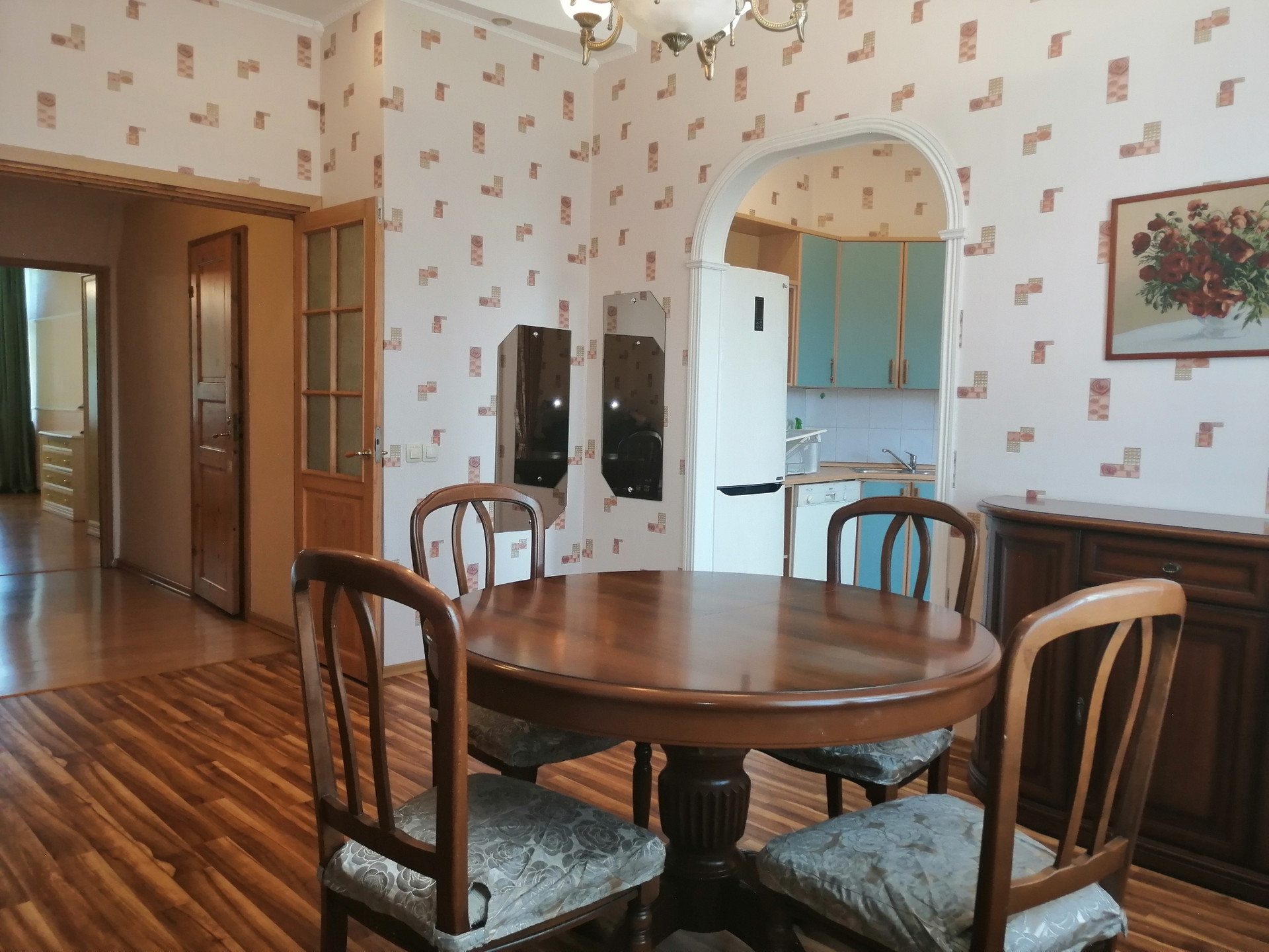 Кухня укомплектована: холодильник, посудомоечная машина, газовая плита, вытяжка. Квартира продаётся с мебелью.