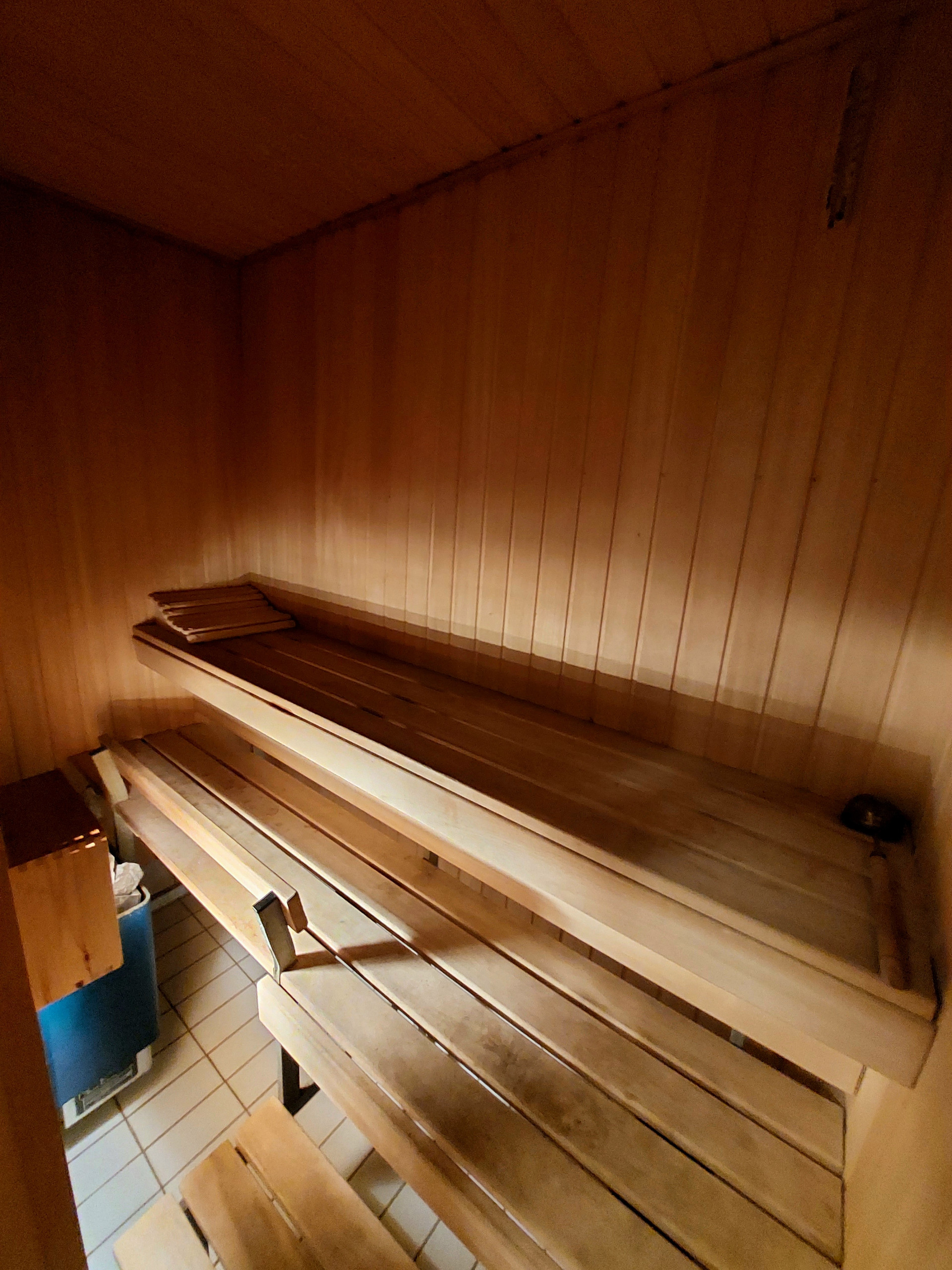 Финская сауна оборудована электрической печью-каменкой HARVIA (Финляндия). Стены, полки и потолок из элитного дерева абаши.
