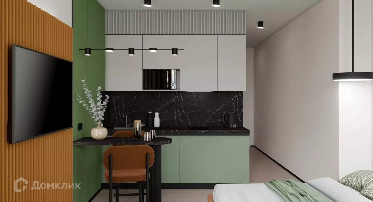 В стоимость студии уже включена отделка, мебель и техника.