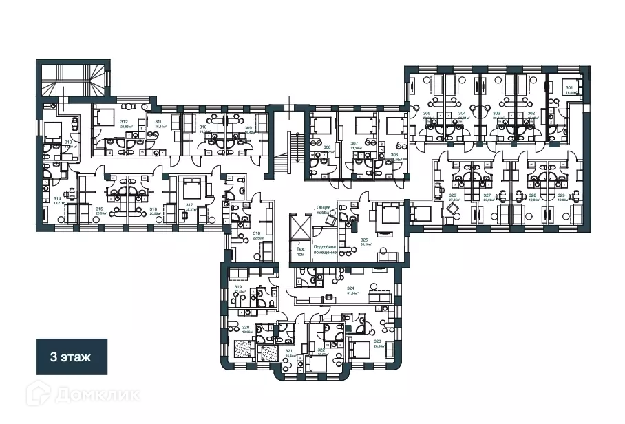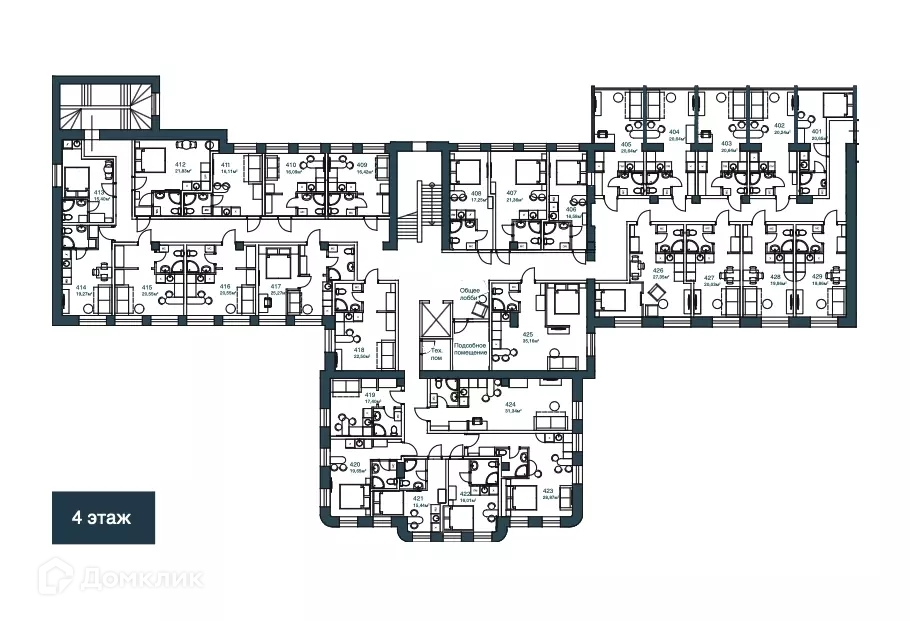 Общая площадь 15.4 м2