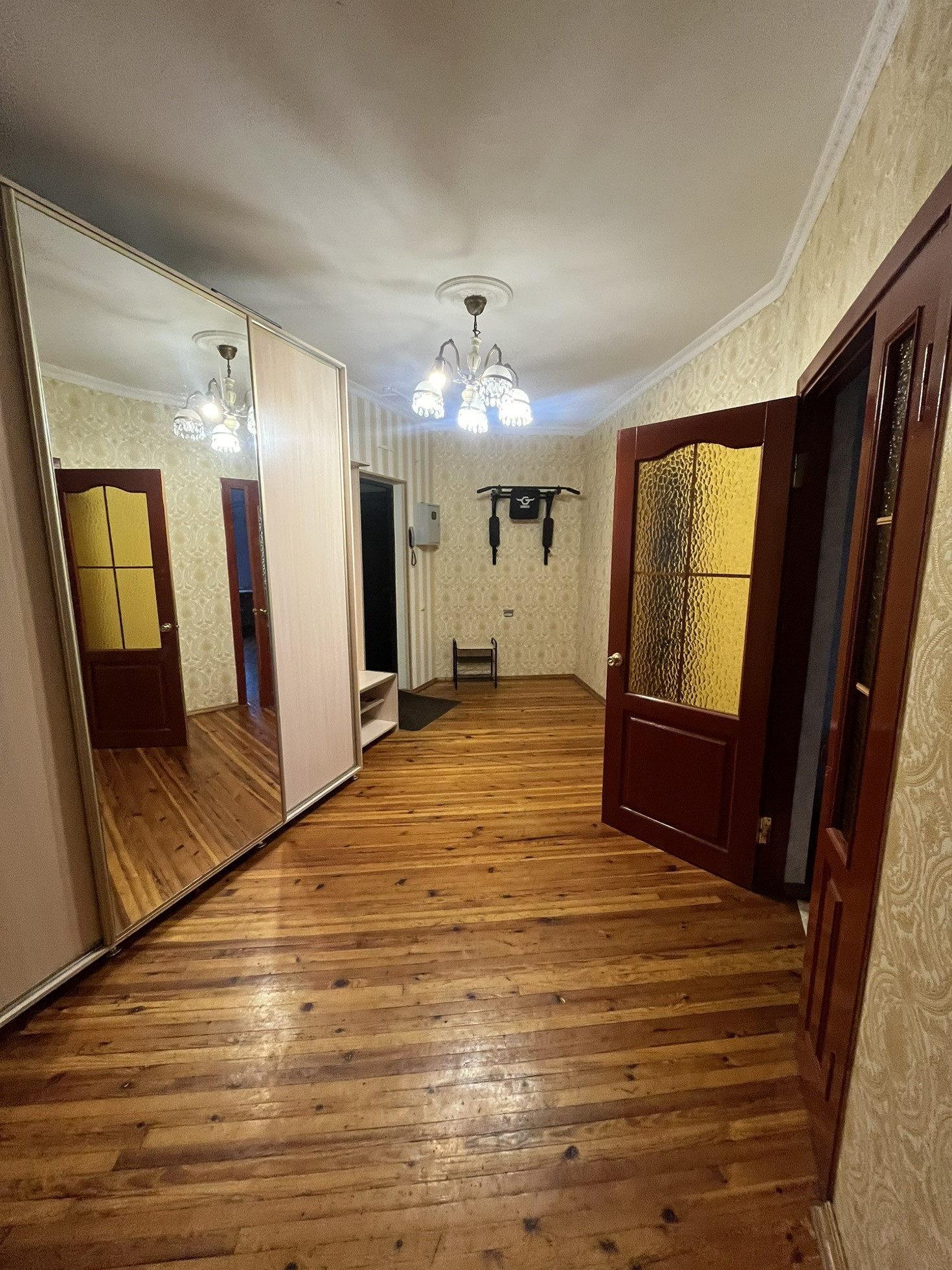 Метраж 70 м2, кухня 12 м2.