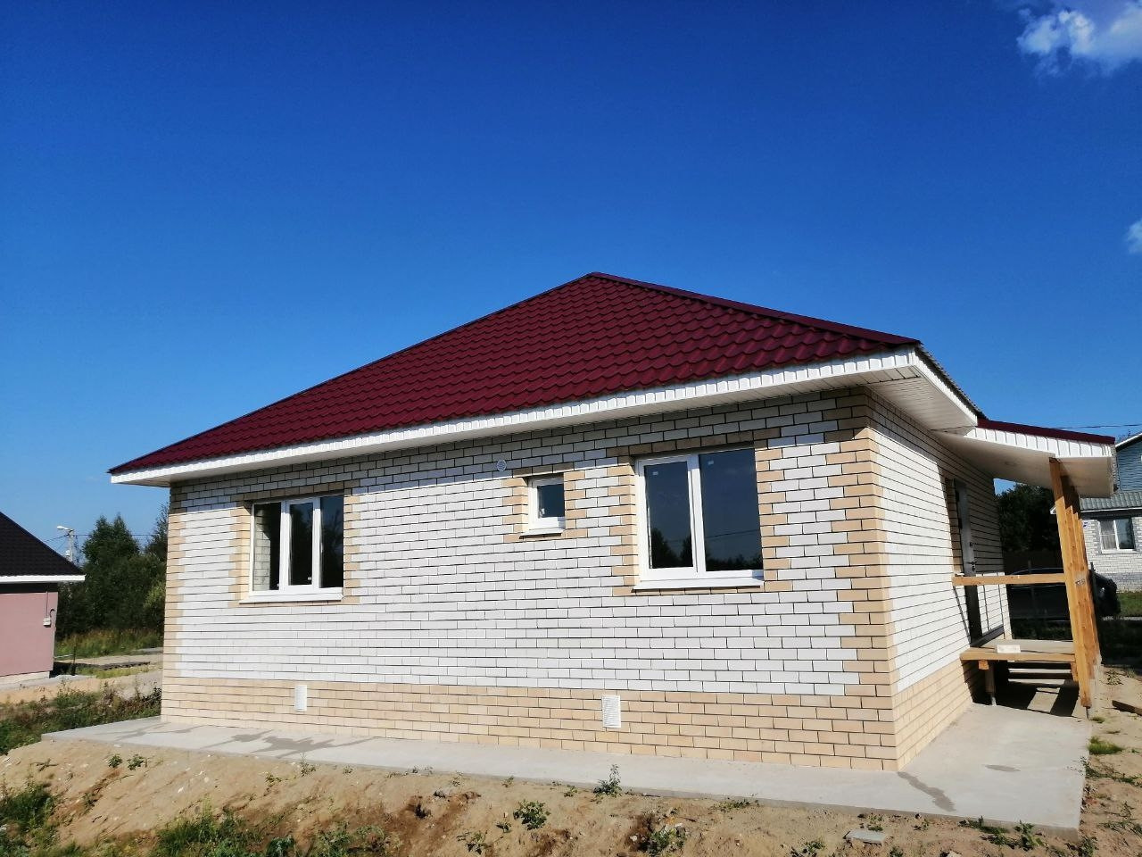 Продам новый дом со всеми коммуникациями (свет, газ, вода, центральная канализация). Площадью 74 кв.м. Участок ровный, сухой площадью 8,7 сотки.