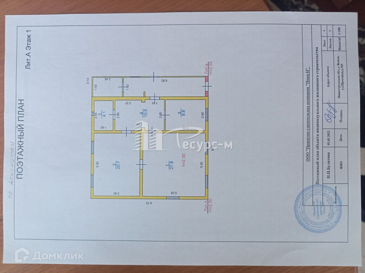 1-этажный дом, 72.3 м2, на продажу в Выксе, Проезжая улица, 9